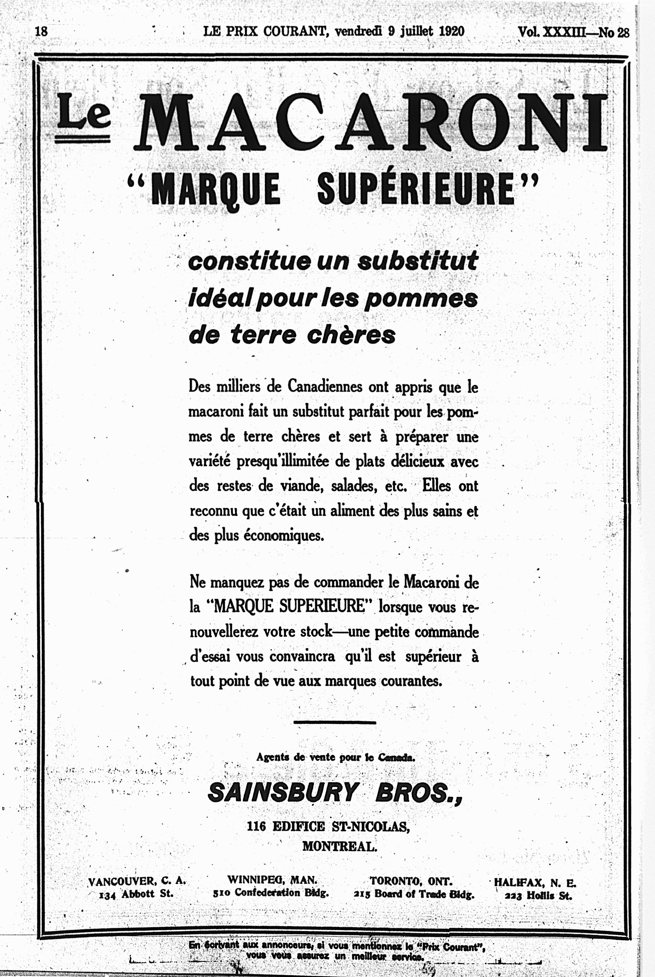 Le prix courant : Vol. 33, no 28 (9 juil. 1920)