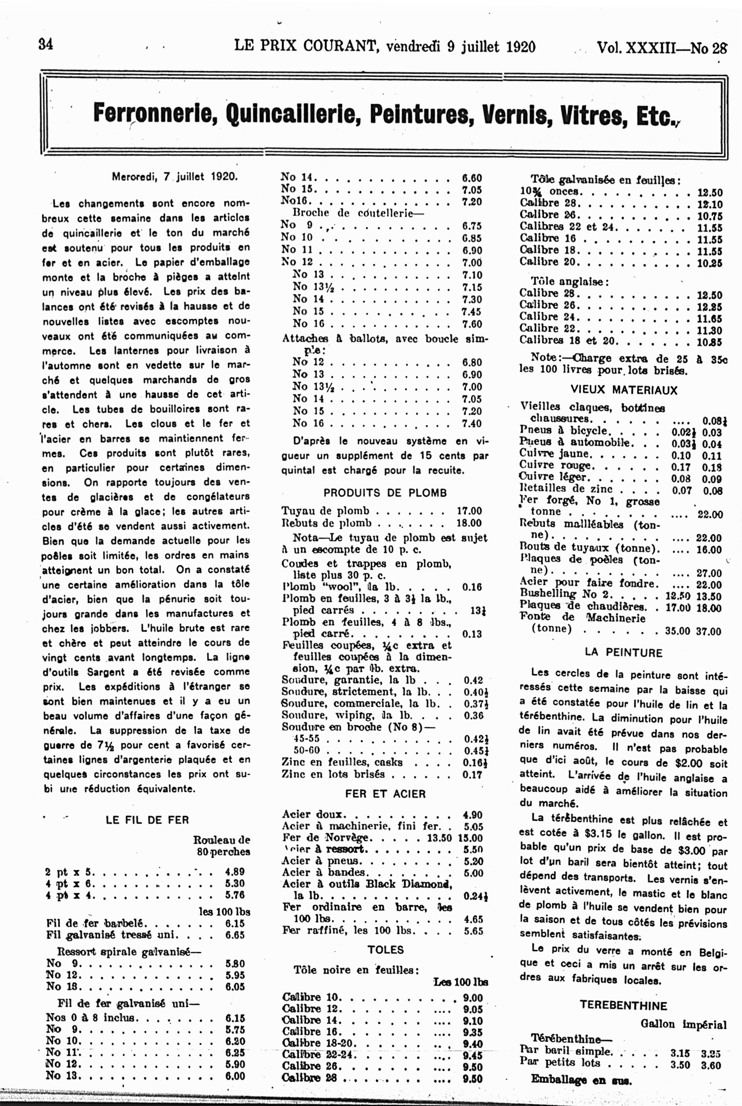 Le prix courant : Vol. 33, no 28 (9 juil. 1920)