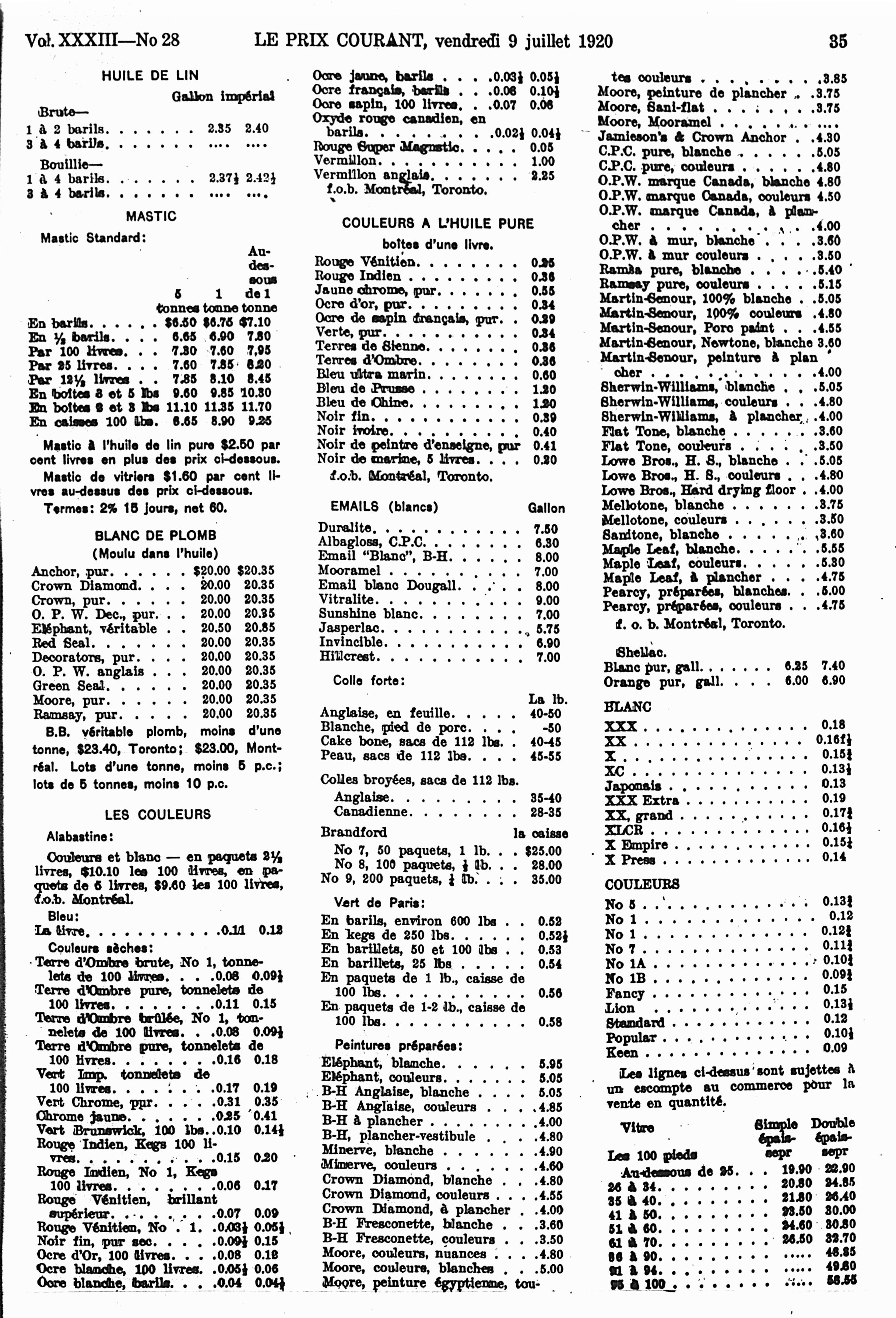 Le prix courant : Vol. 33, no 28 (9 juil. 1920)