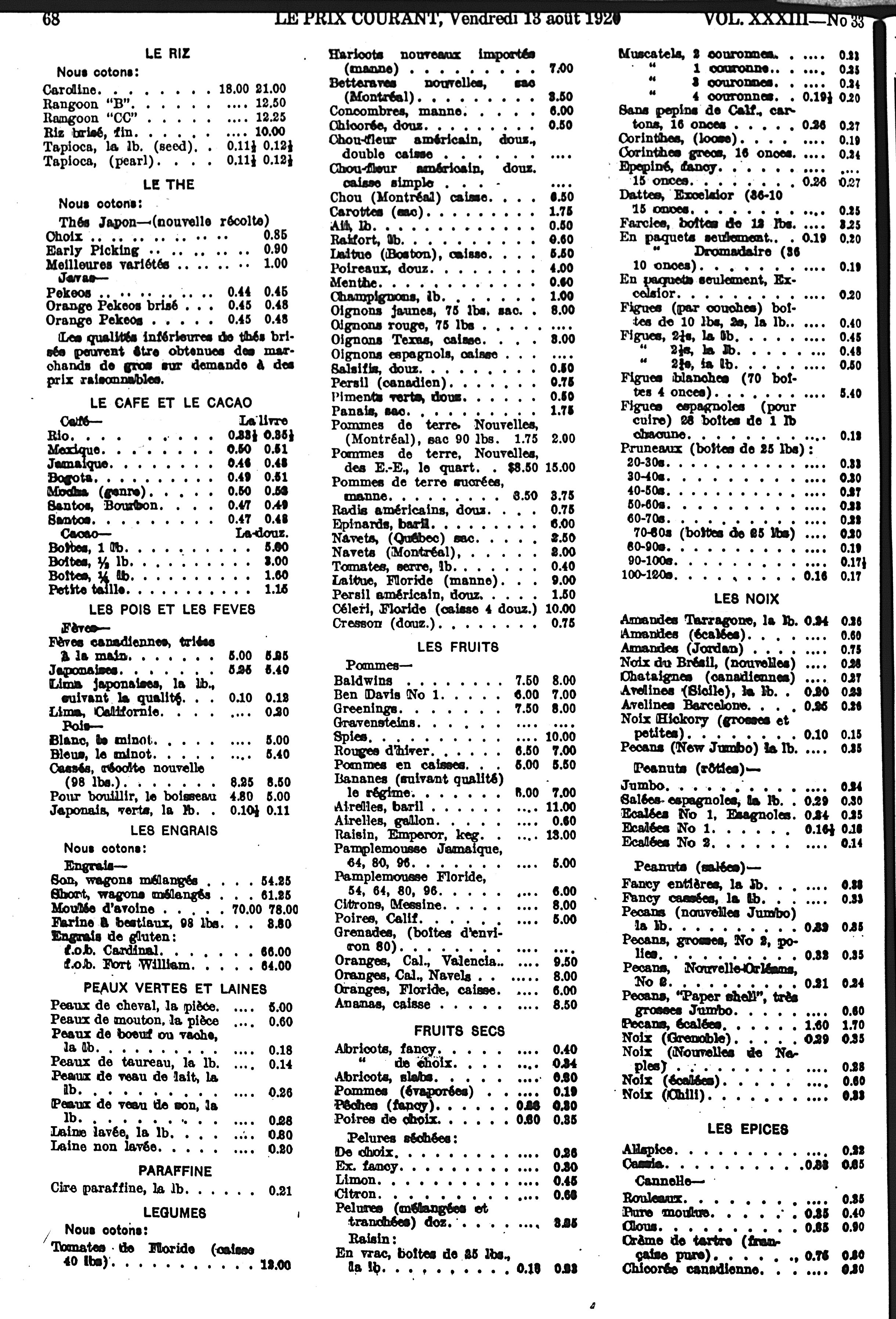 Le prix courant : Vol. 33, no 33 (13 août 1920)