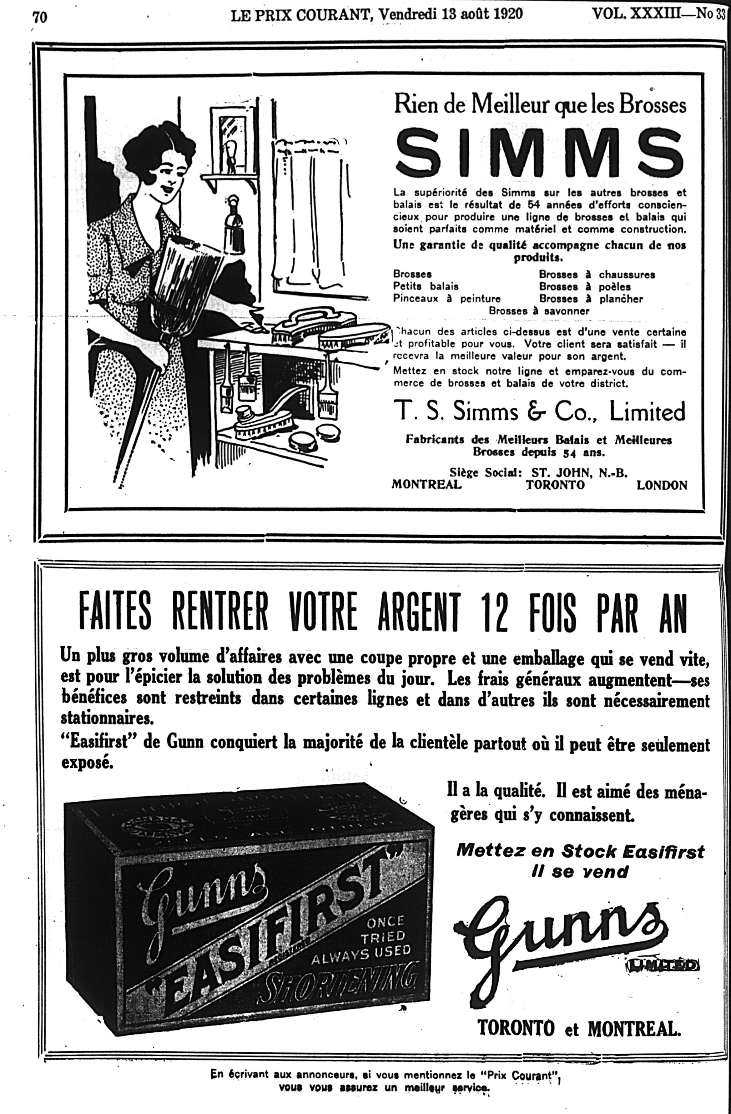 Le prix courant : Vol. 33, no 33 (13 août 1920)