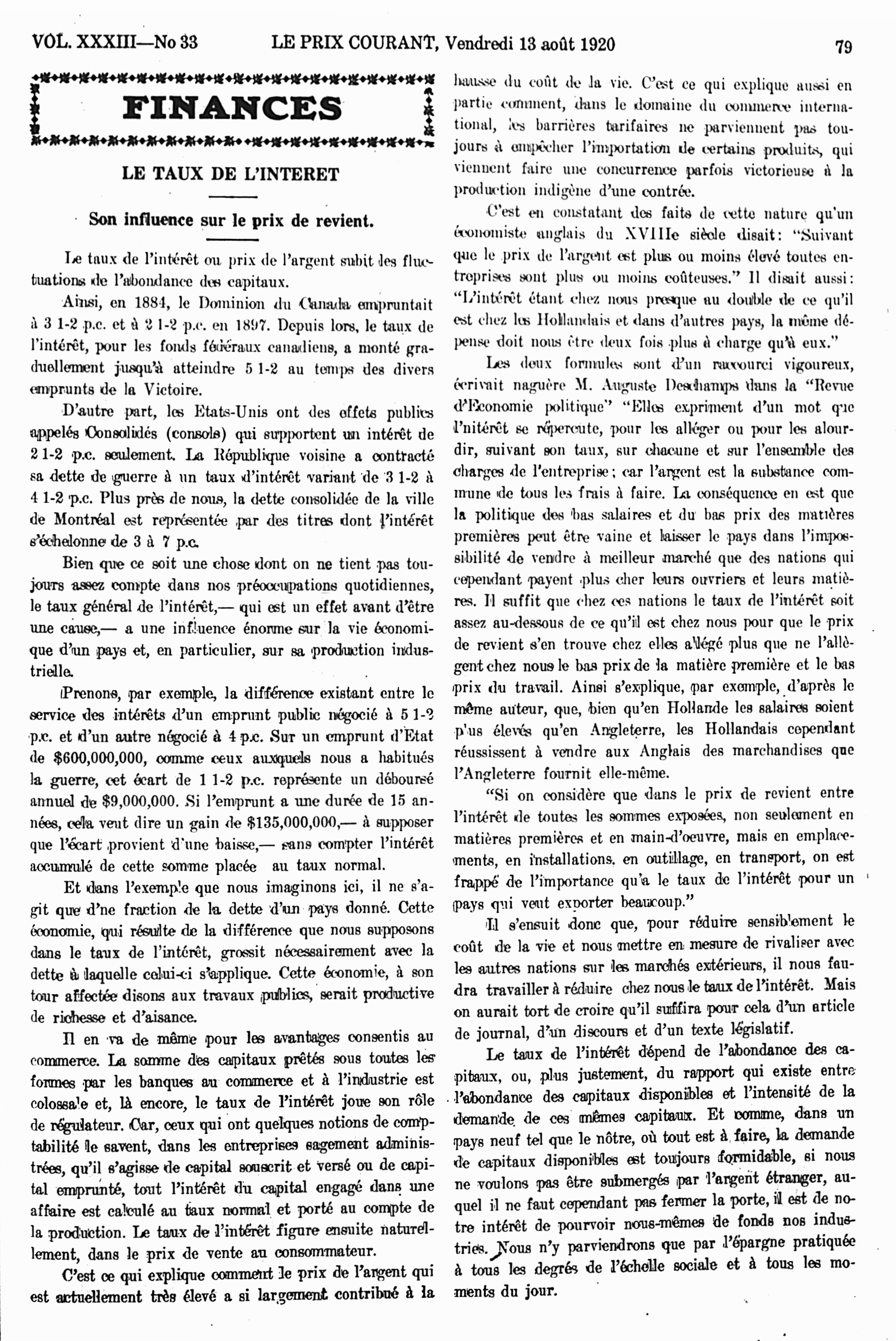 Le prix courant : Vol. 33, no 33 (13 août 1920)
