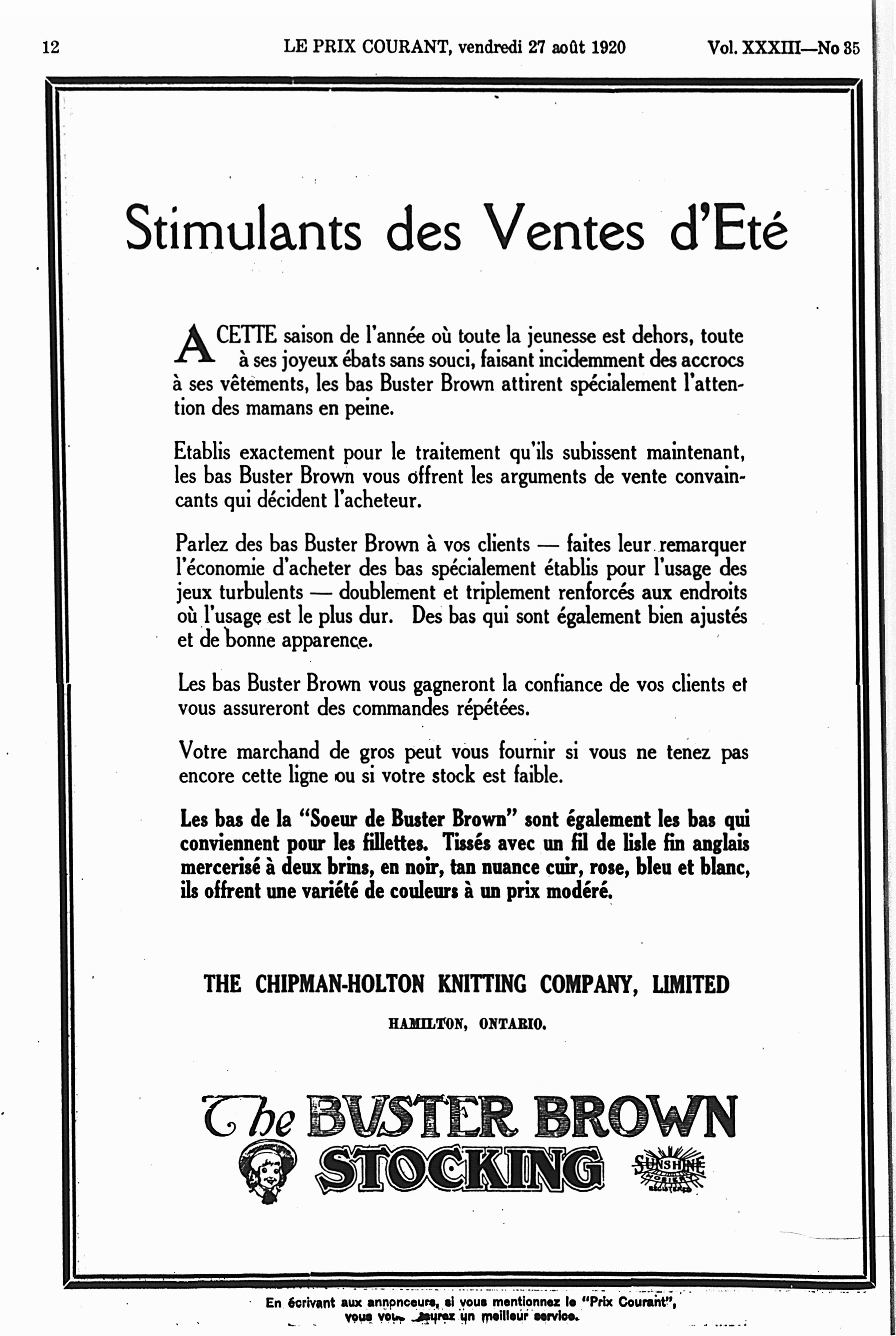Le prix courant : Vol. 33, no 35 (27 août 1920)
