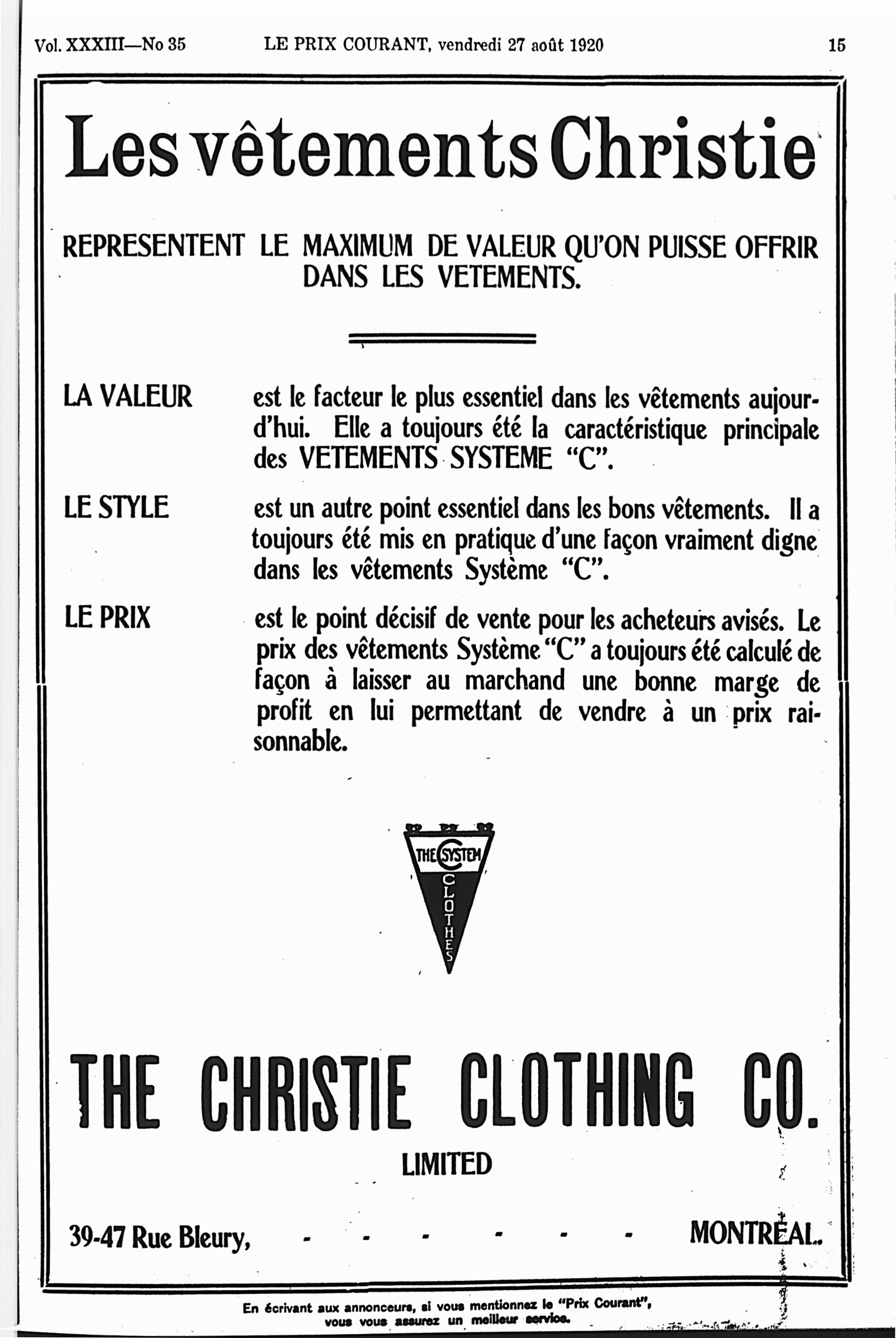 Le prix courant : Vol. 33, no 35 (27 août 1920)