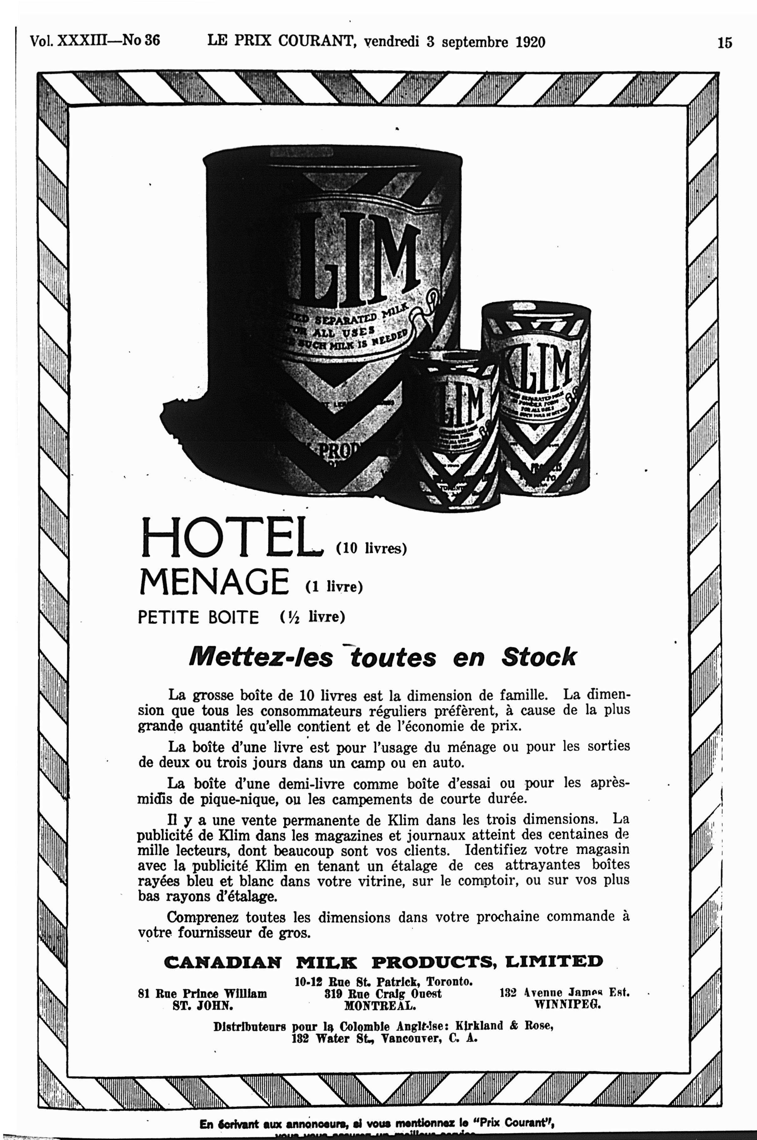 Le prix courant : Vol. 33, no 36 (3 sept. 1920)
