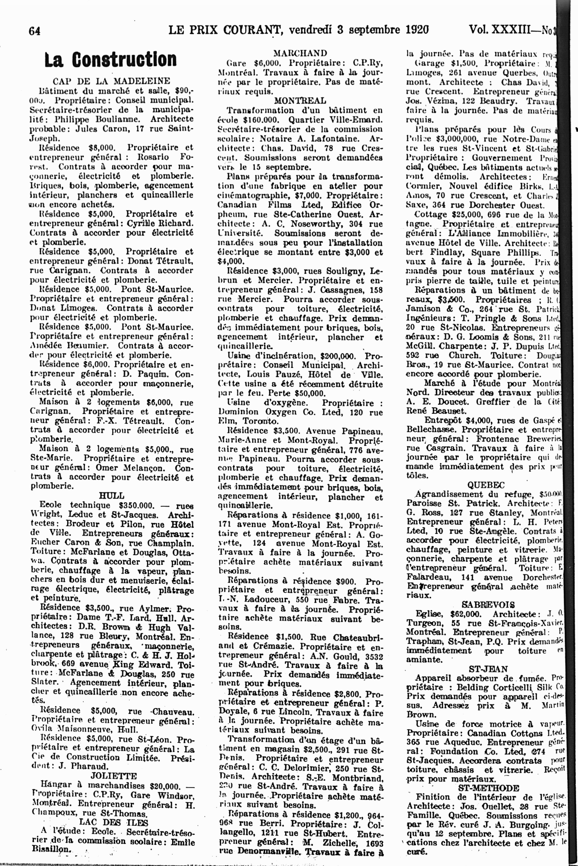 Le prix courant : Vol. 33, no 36 (3 sept. 1920)