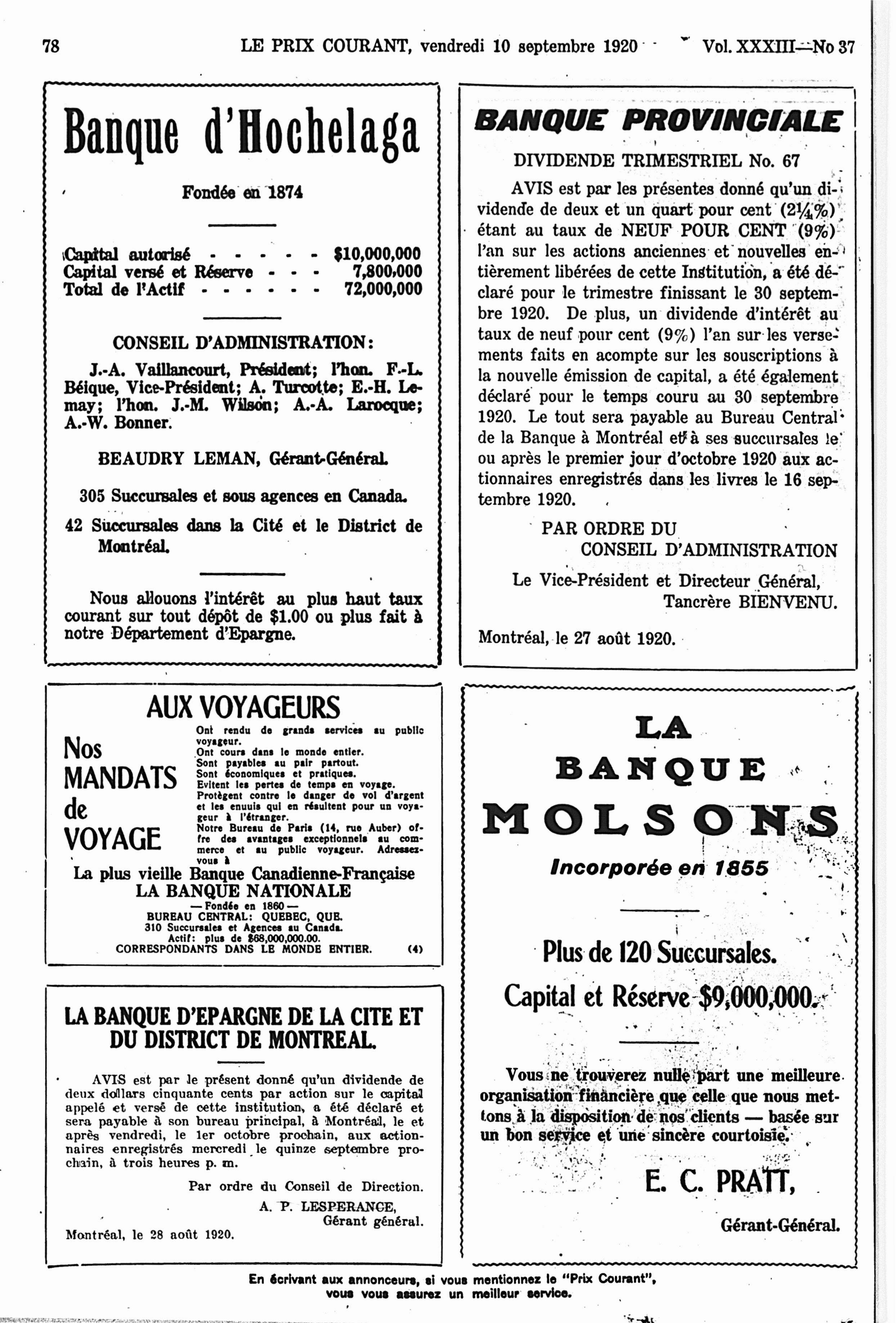 Le prix courant : Vol. 33, no 37 (10 sept. 1920)