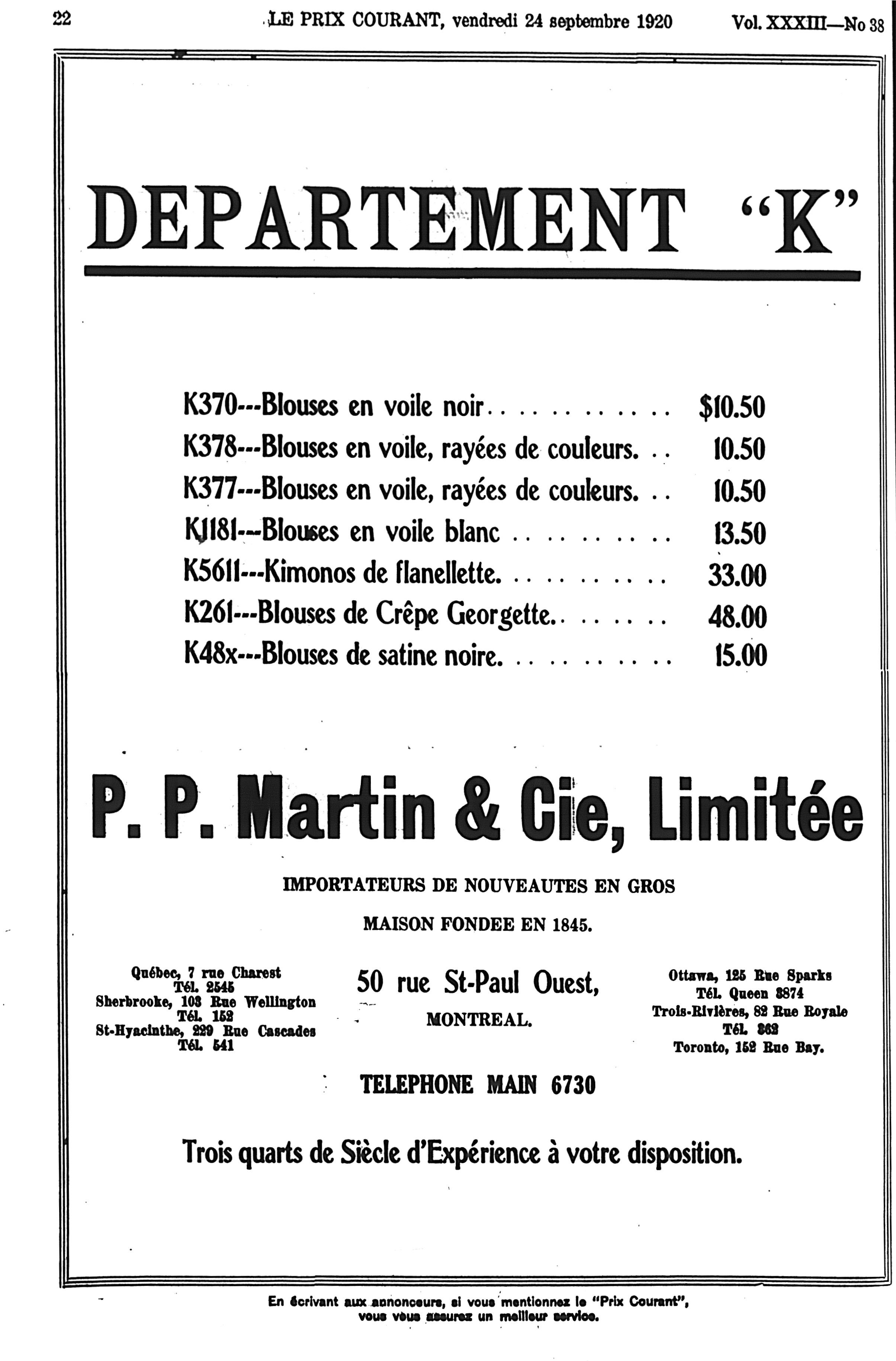 Le prix courant : Vol. 33, no 39 (24 sept. 1920)