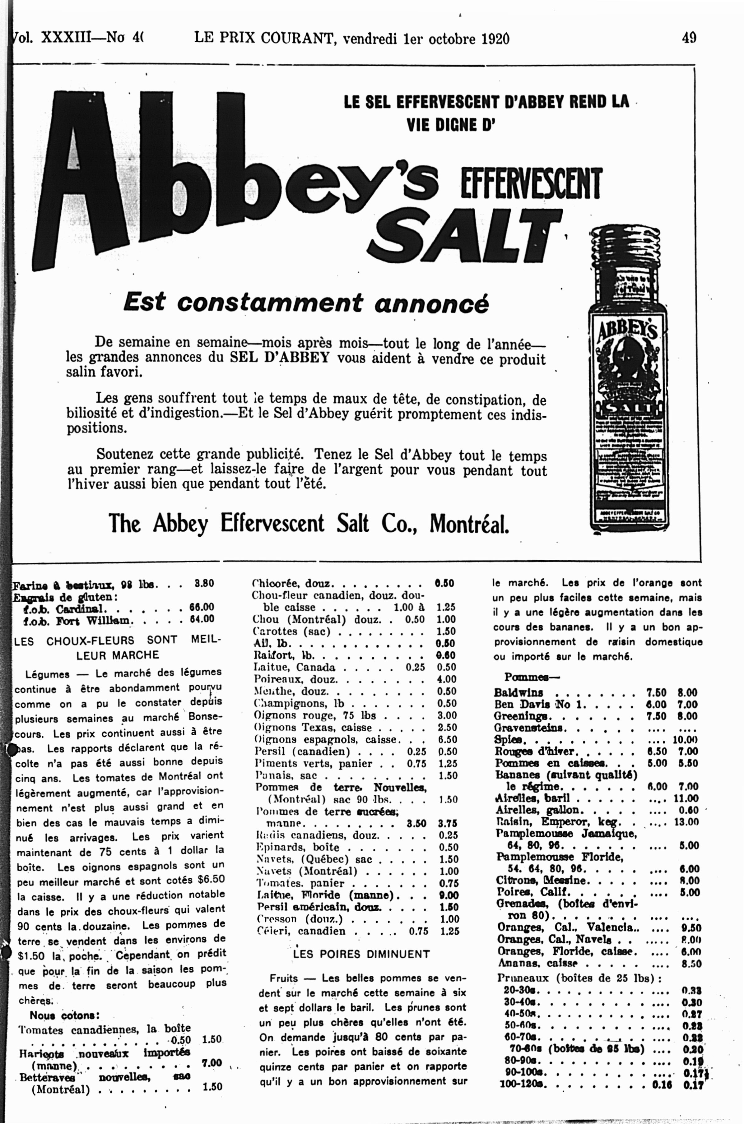 Le prix courant : Vol. 33, no 40 (1 oct. 1920)