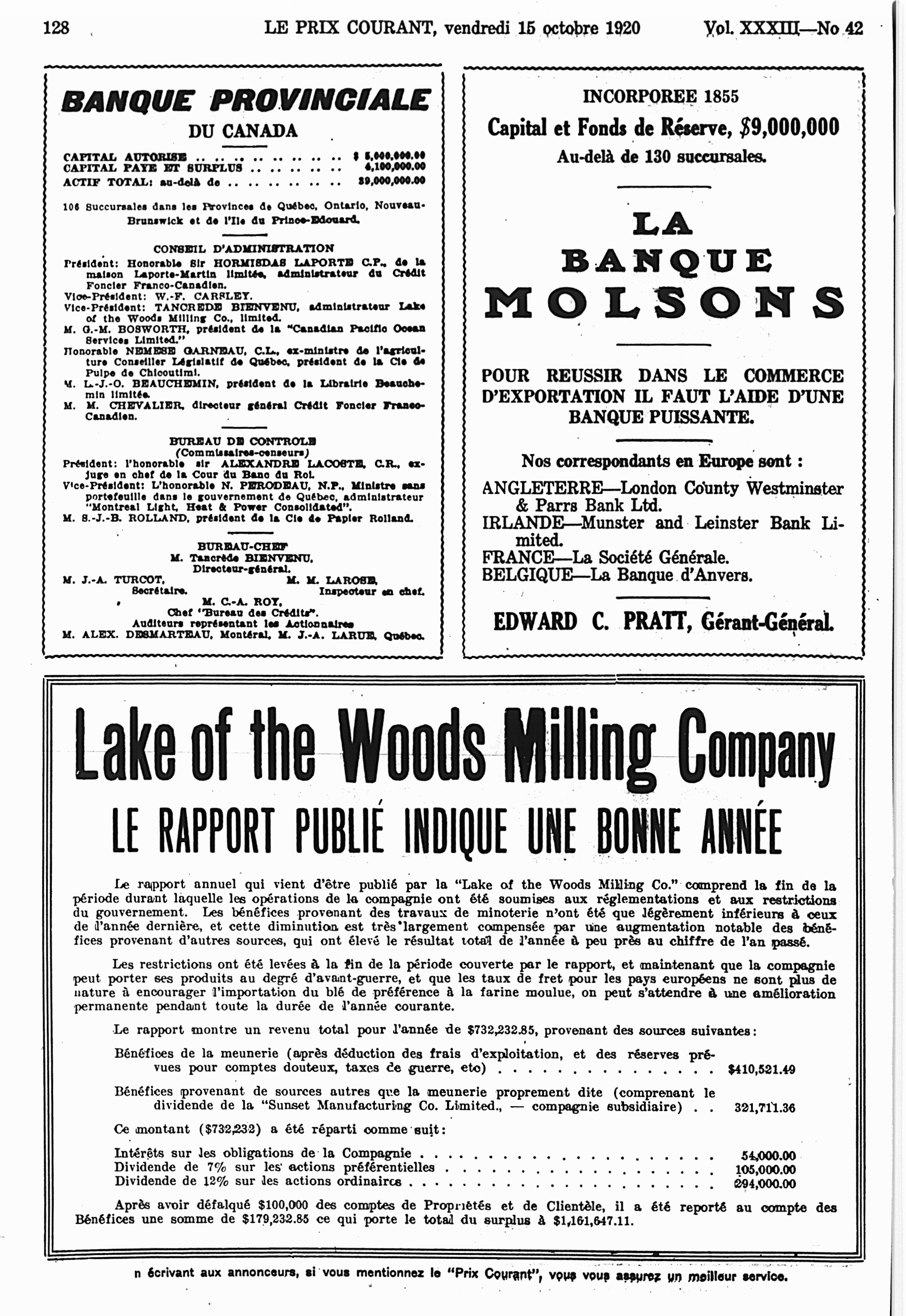 Le prix courant : Vol. 33, no 42 (15 oct. 1920)
