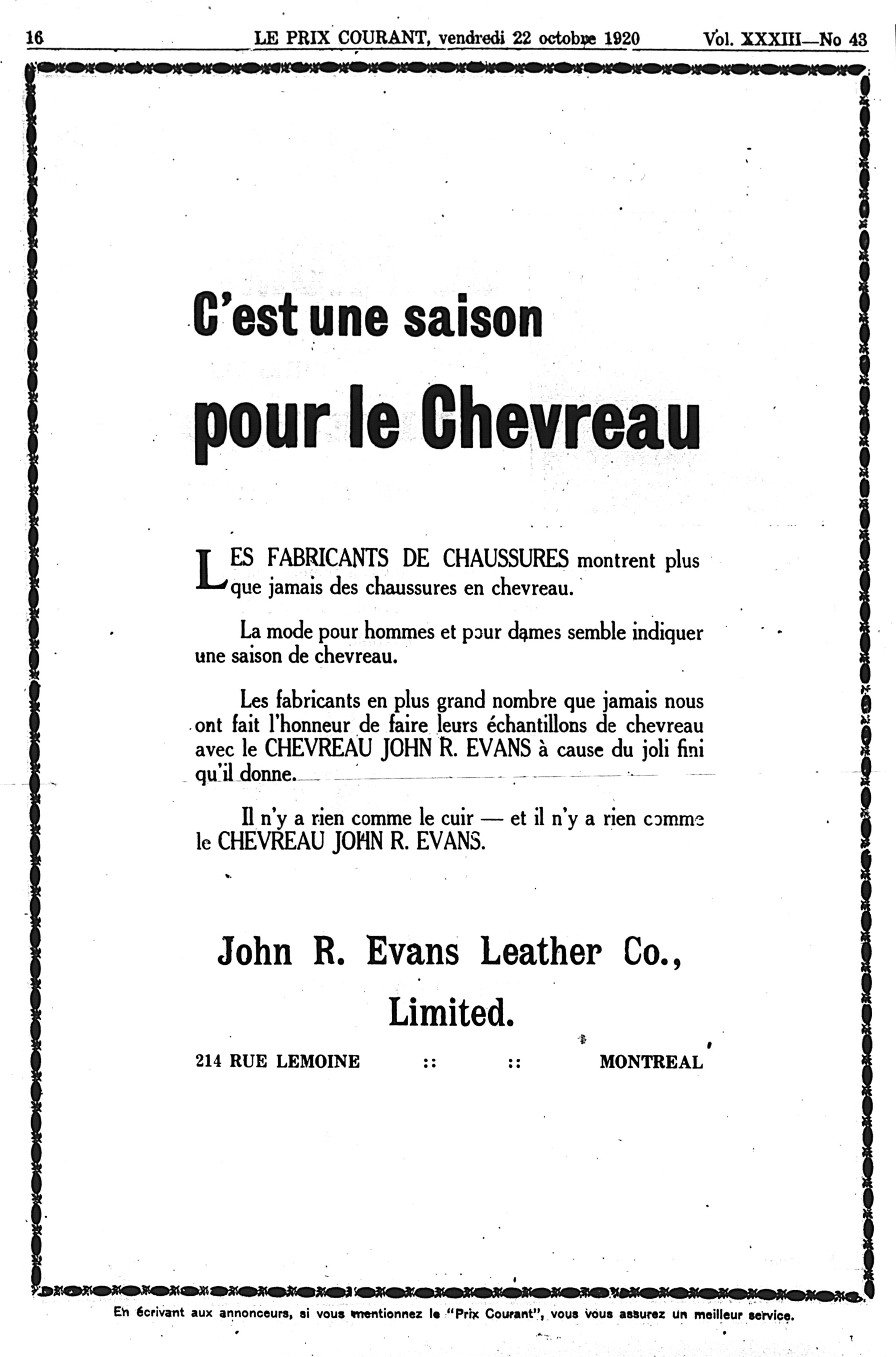 Le prix courant : Vol. 33, no 43 (22 oct. 1920)