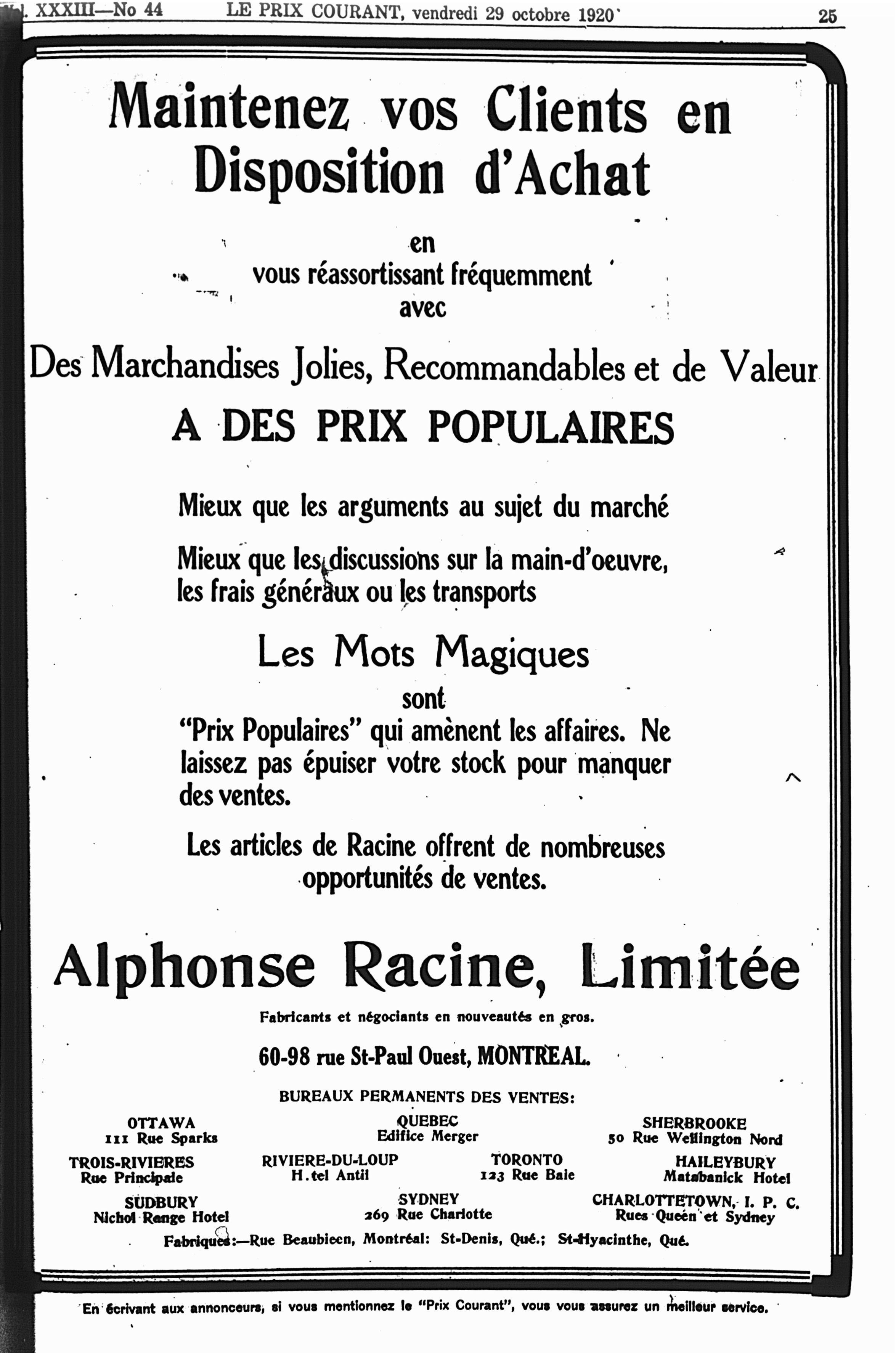 Montréal : Compagnie de Publication des Marchands Détaillants du Canada, [1920]; 108 images with full-text search