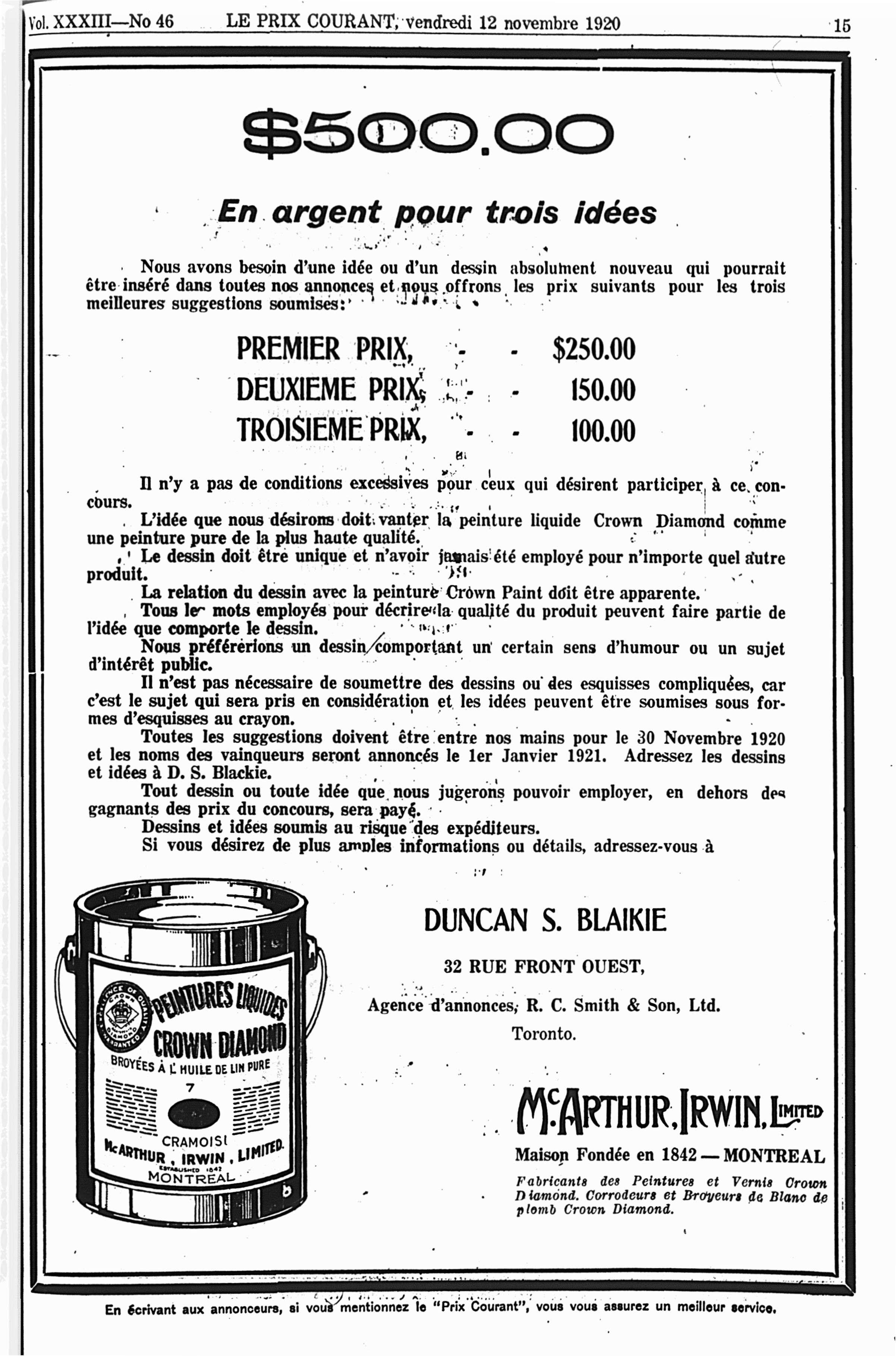 Le prix courant : Vol. 33, no 46 (12 nov. 1920)