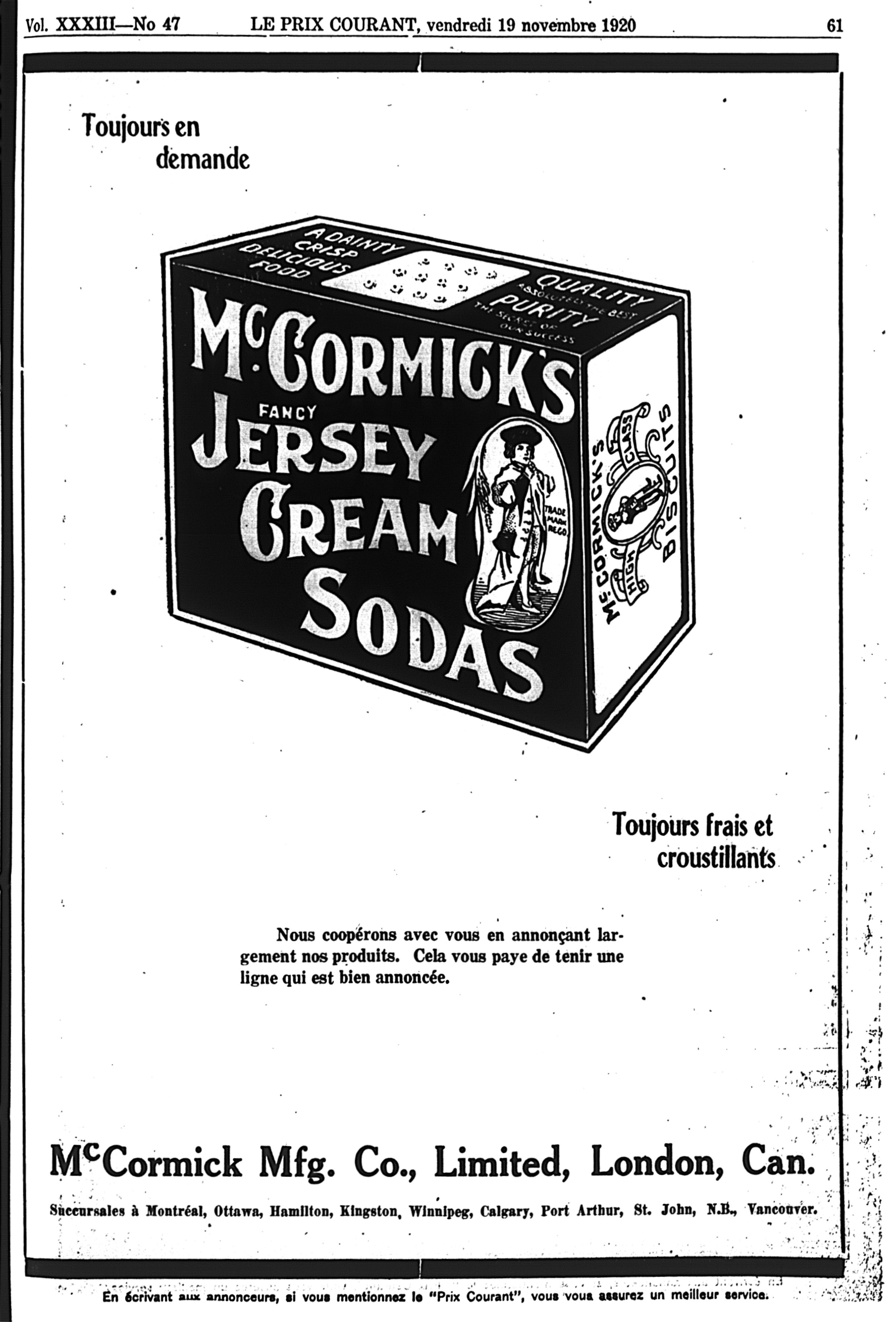 Le prix courant : Vol. 33, no 47 (19 nov. 1920)