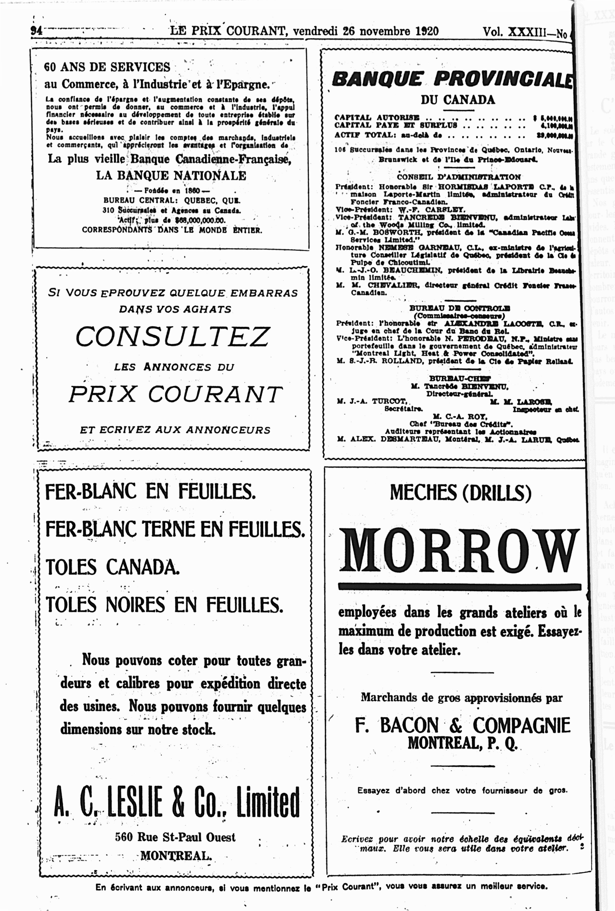 Le prix courant : Vol. 33, no 48 (26 nov. 1920)
