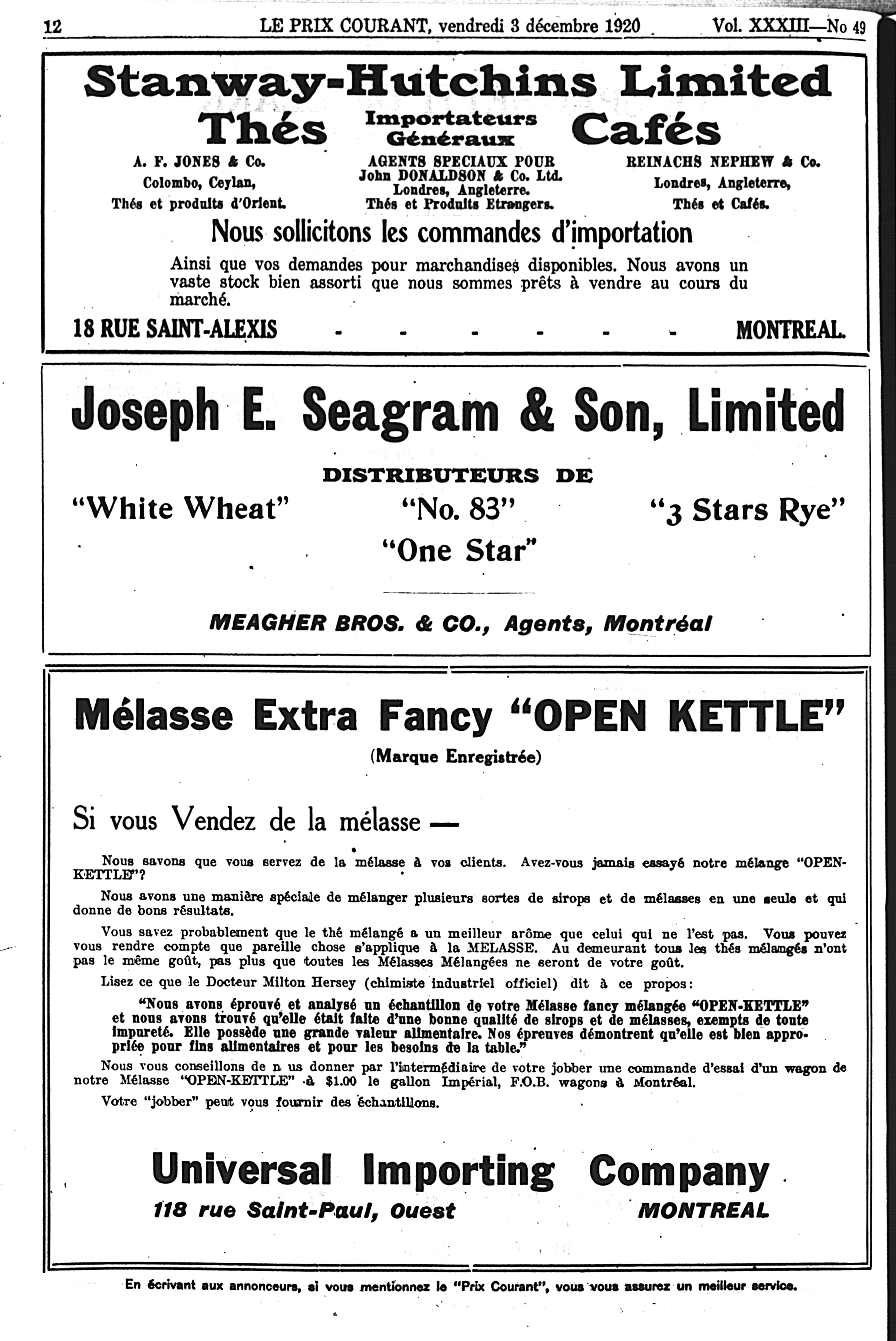 Le prix courant : Vol. 33, no 49 (3 déc. 1920)
