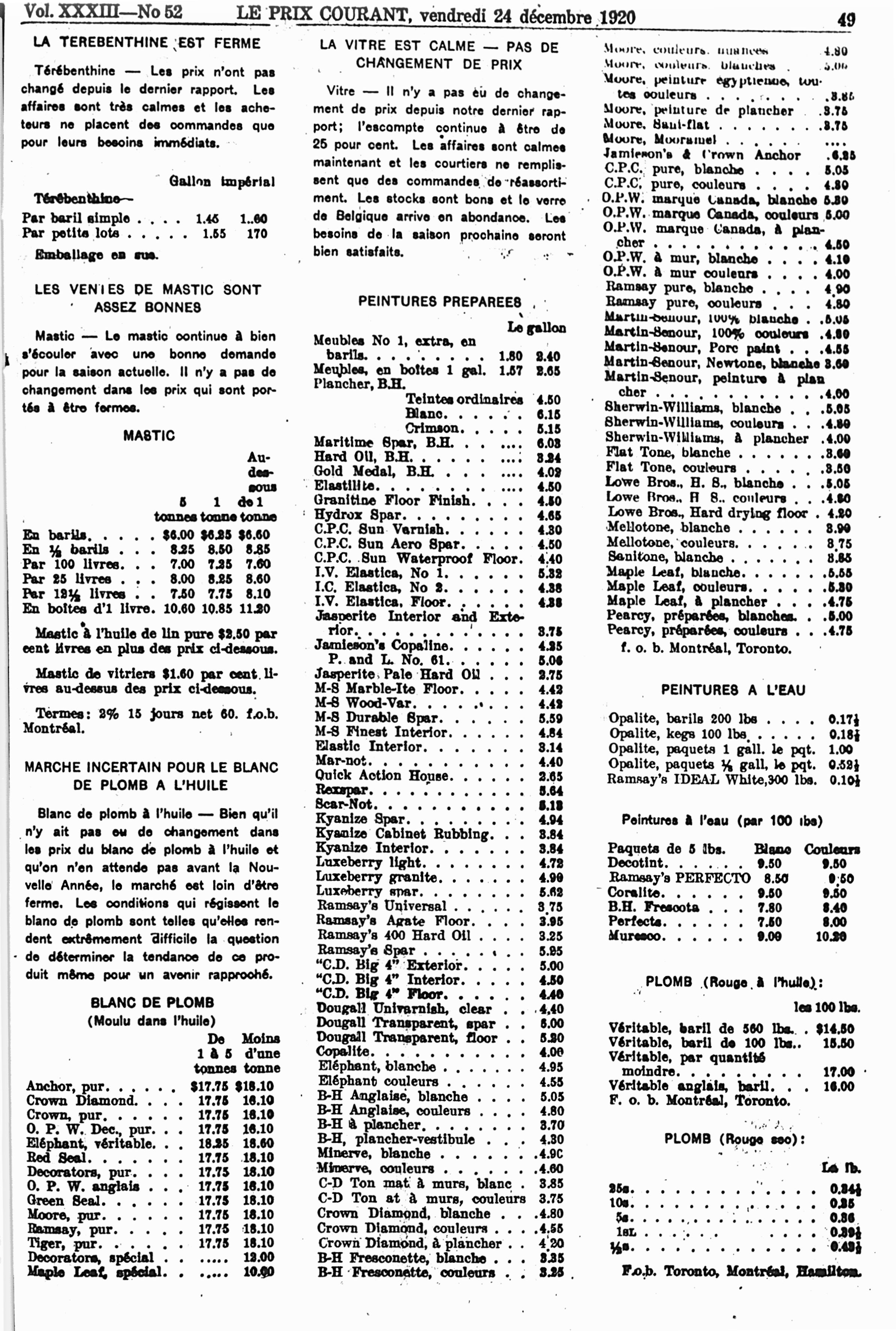 Le prix courant : Vol. 33, no 52 (24 déc. 1920)