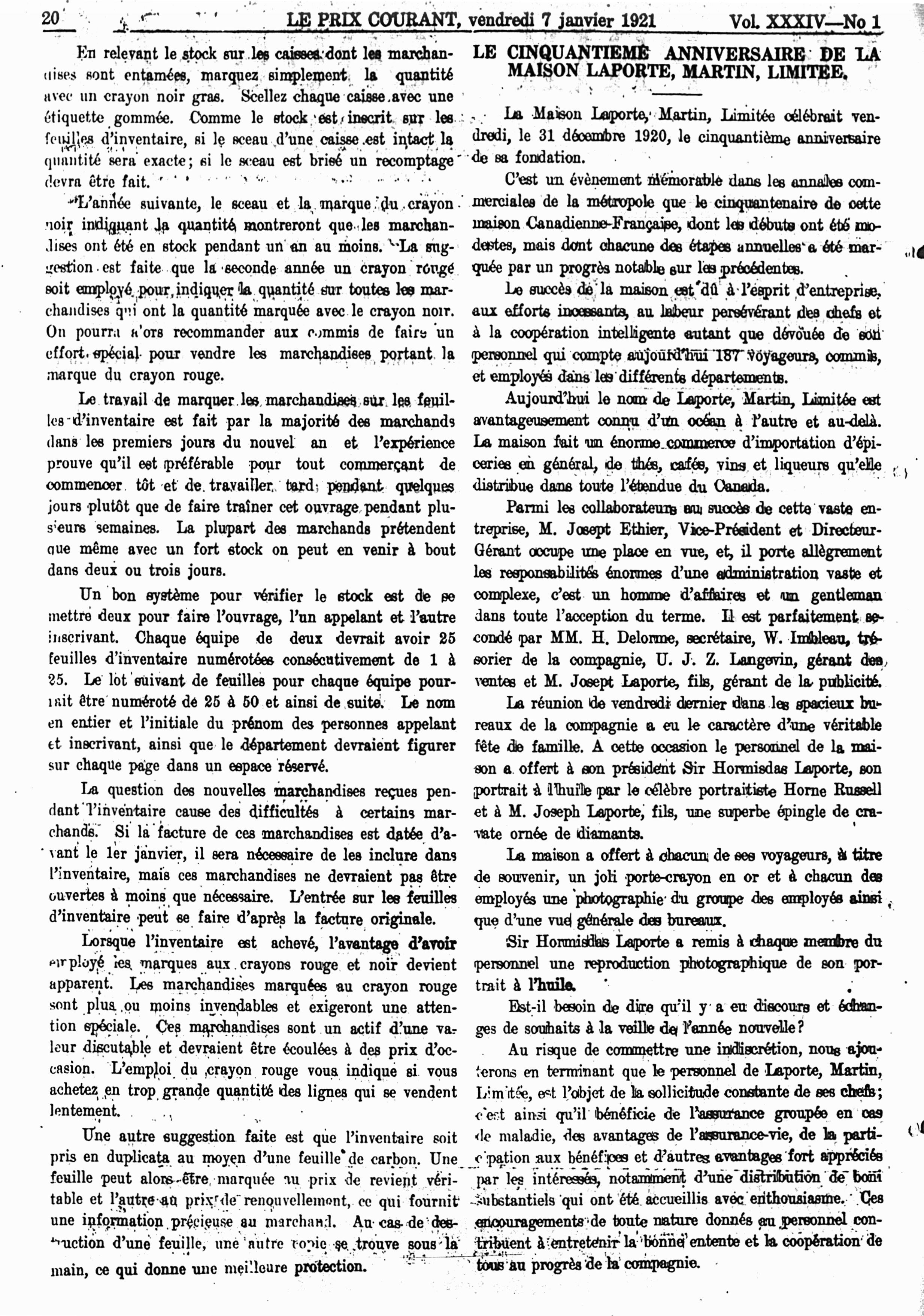 Le prix courant : Vol. 34, no 1 (7 janv. 1921)