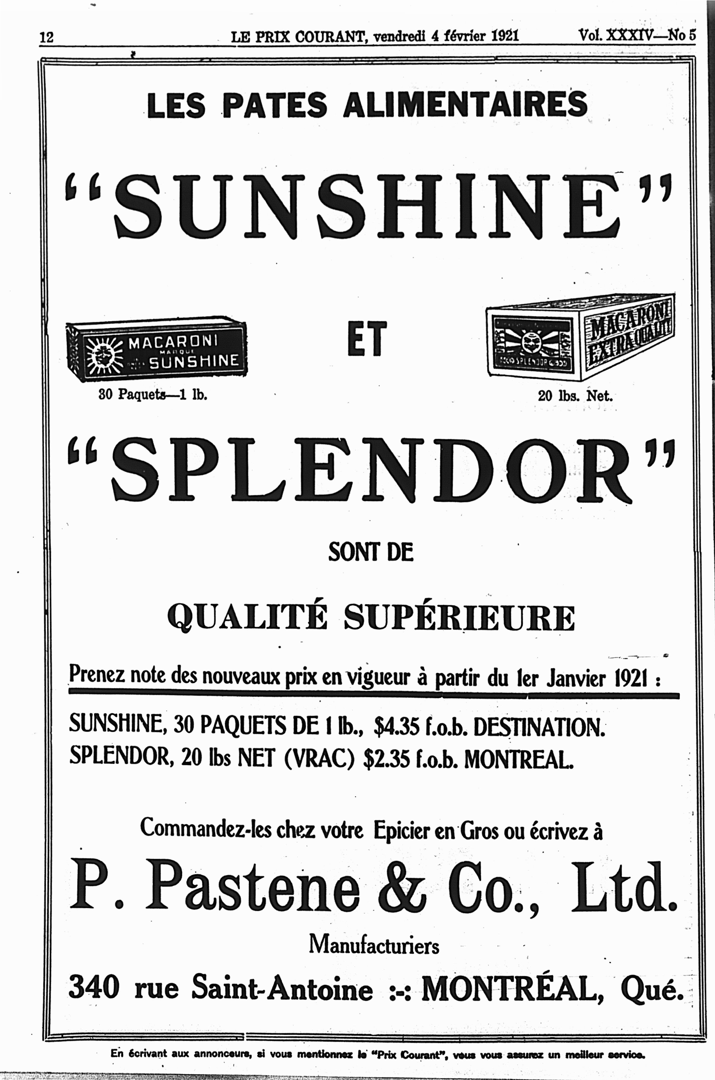 Le prix courant : Vol. 34, no 5 (4 févr. 1921)