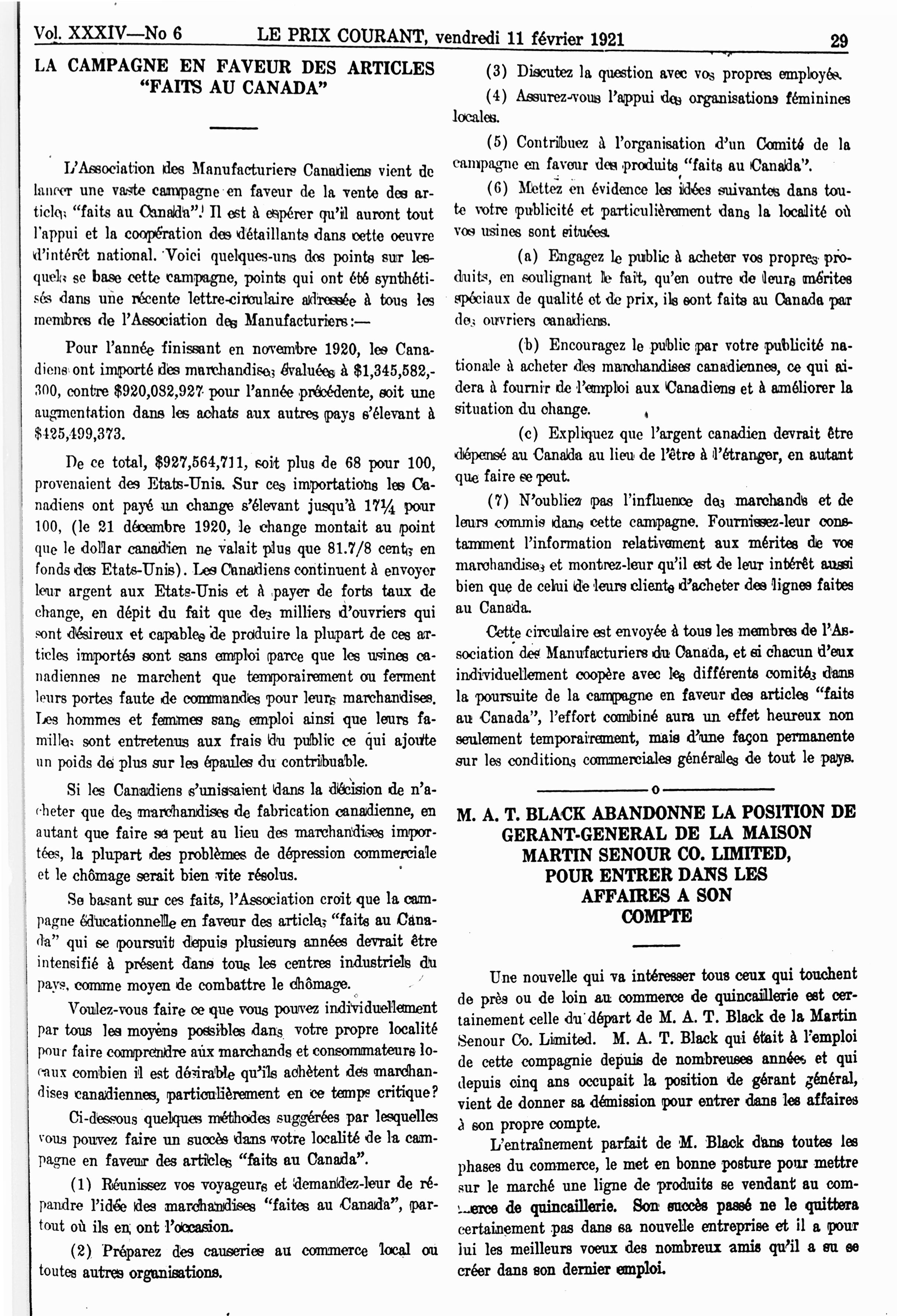 Le prix courant : Vol. 34, no 6 (11 févr. 1921)