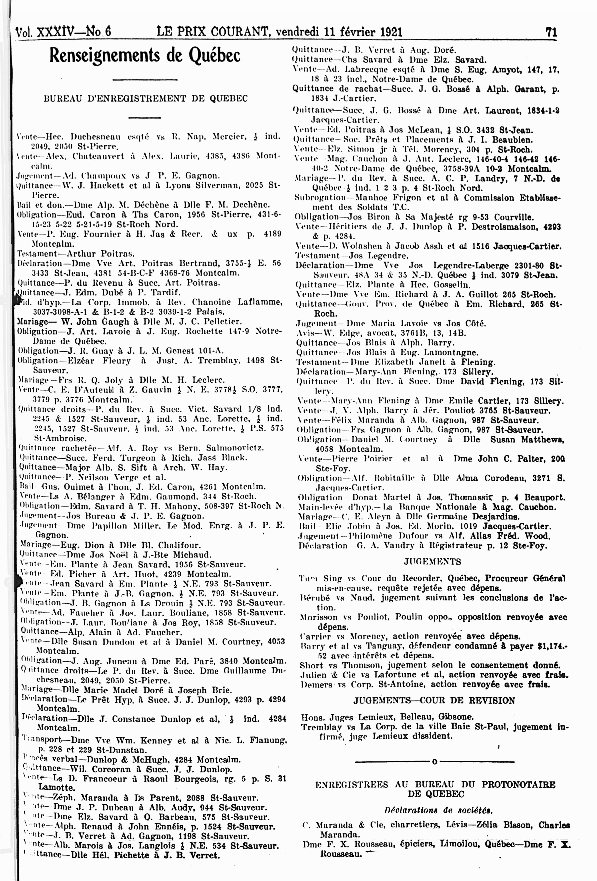 Le prix courant : Vol. 34, no 6 (11 févr. 1921)