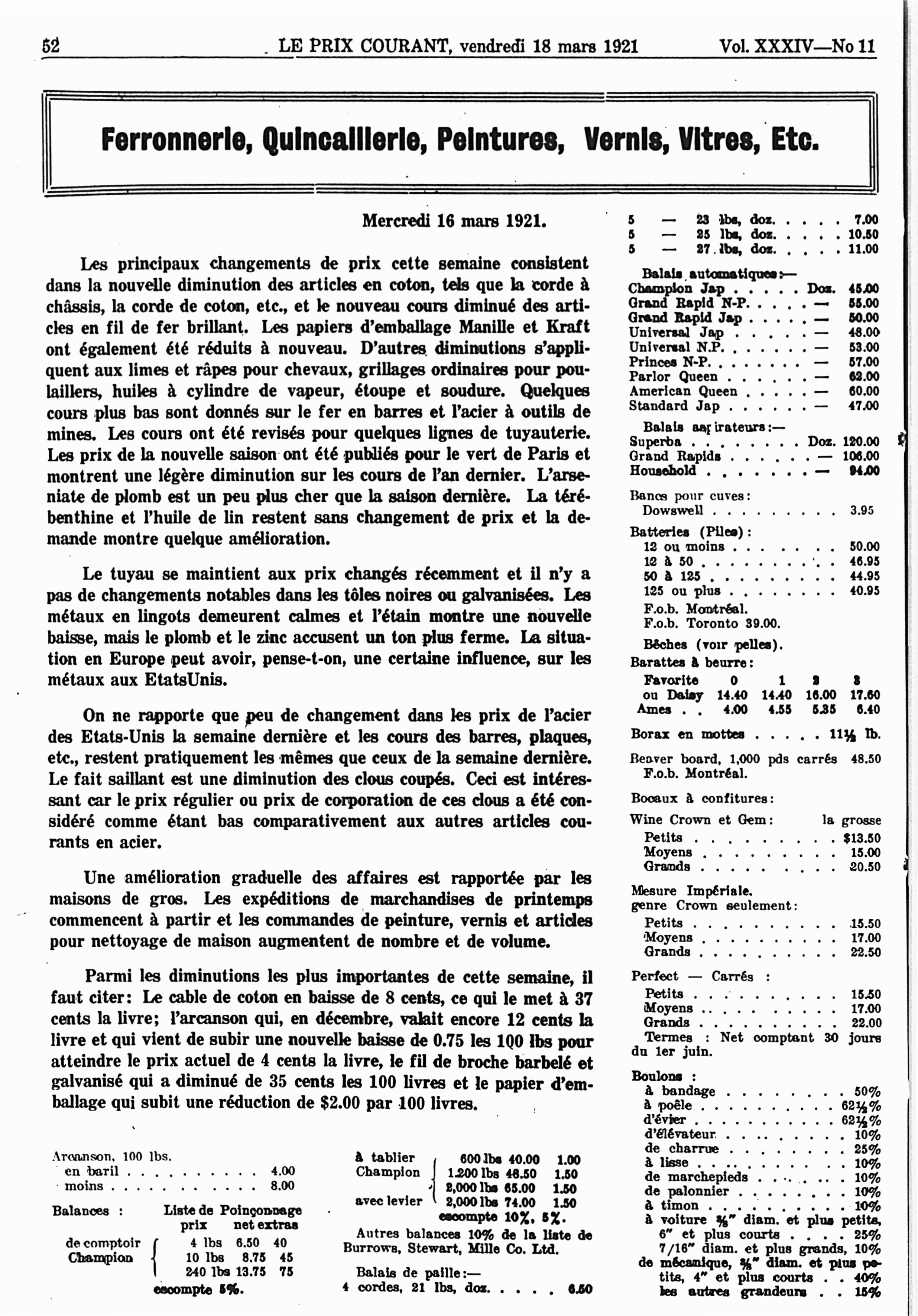 Le prix courant : Vol. 34, no 11 (18 mars 1921)