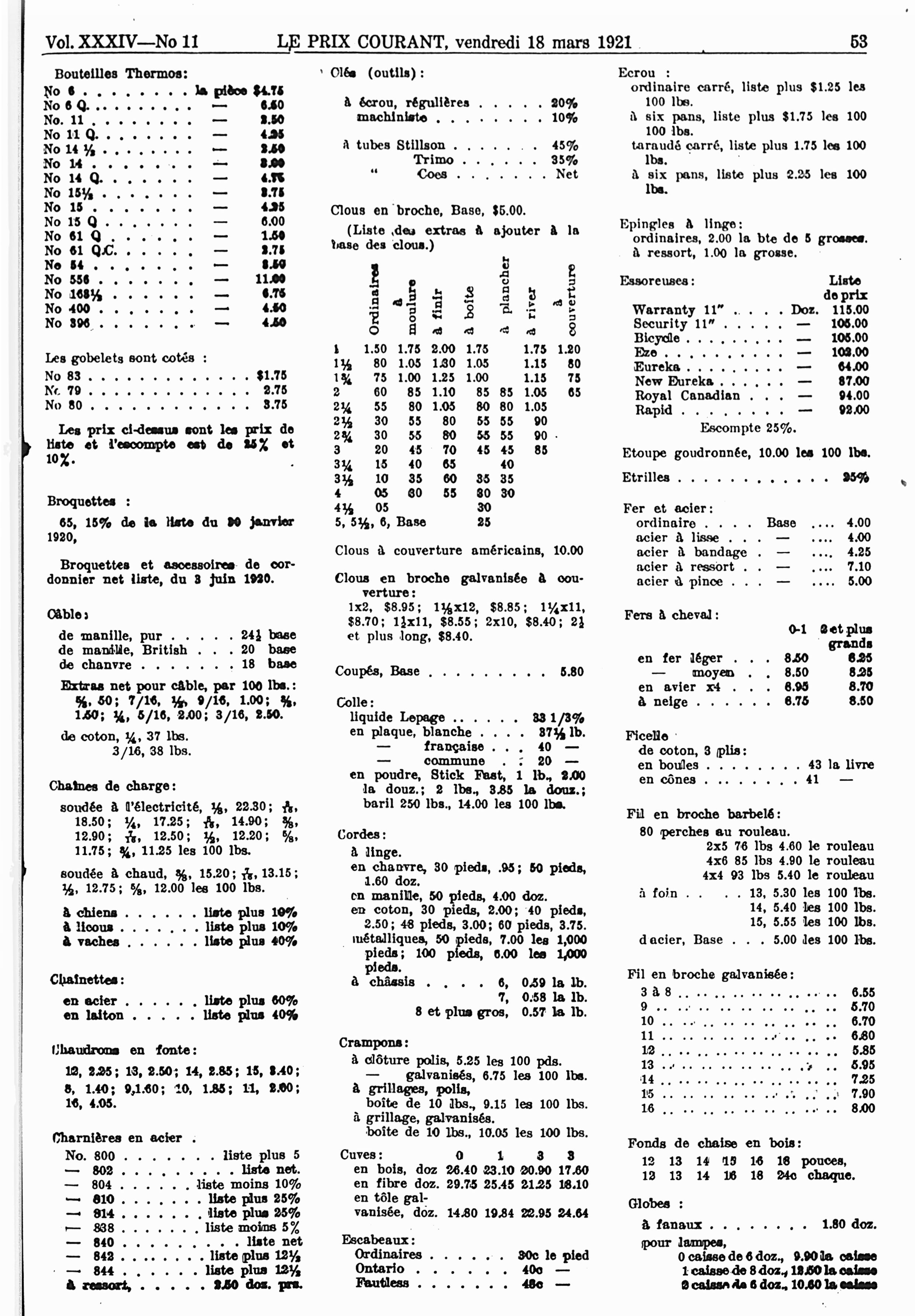Le prix courant : Vol. 34, no 11 (18 mars 1921)