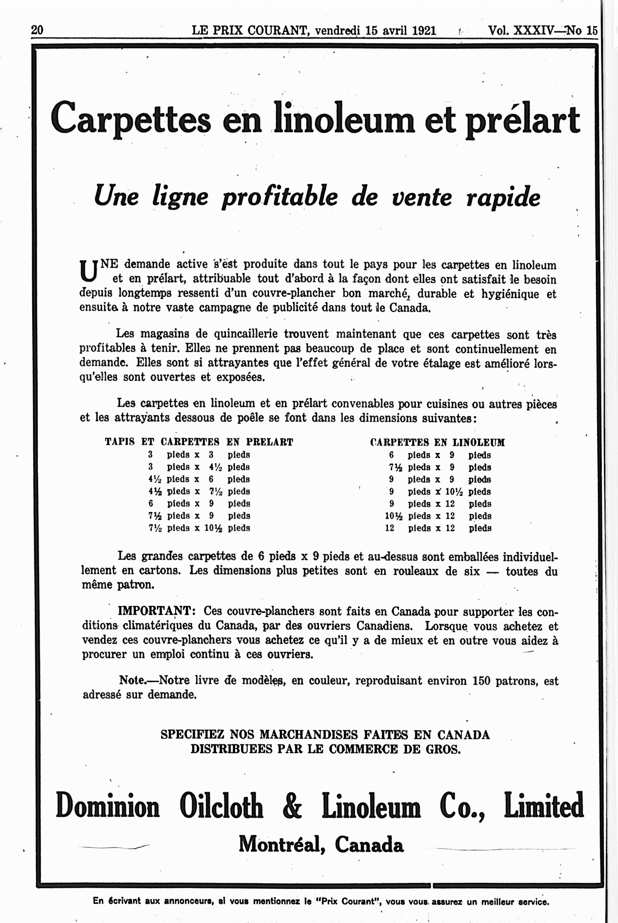 Le prix courant : Vol. 34, no 15 (15 avril 1921)