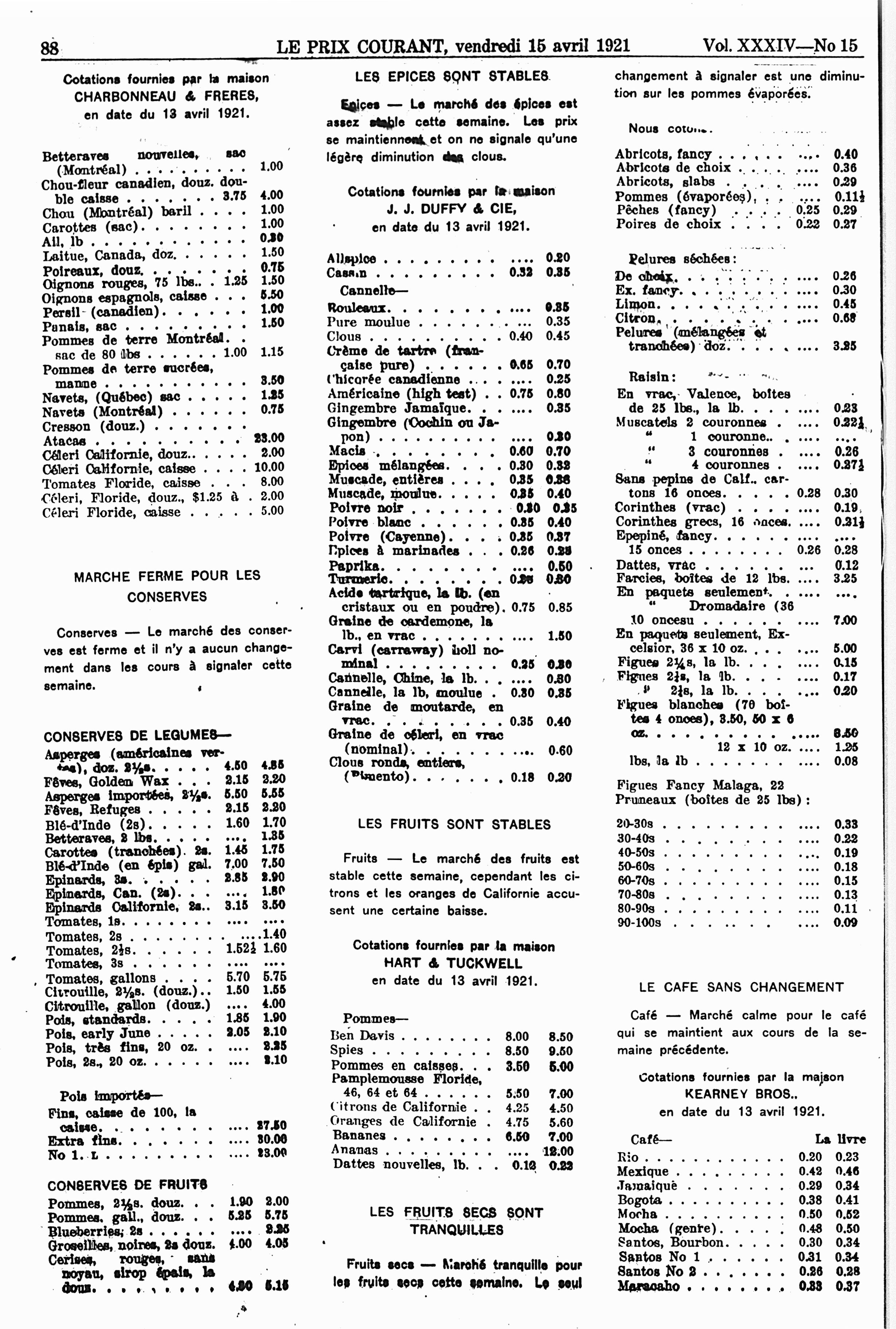 Le prix courant : Vol. 34, no 15 (15 avril 1921)