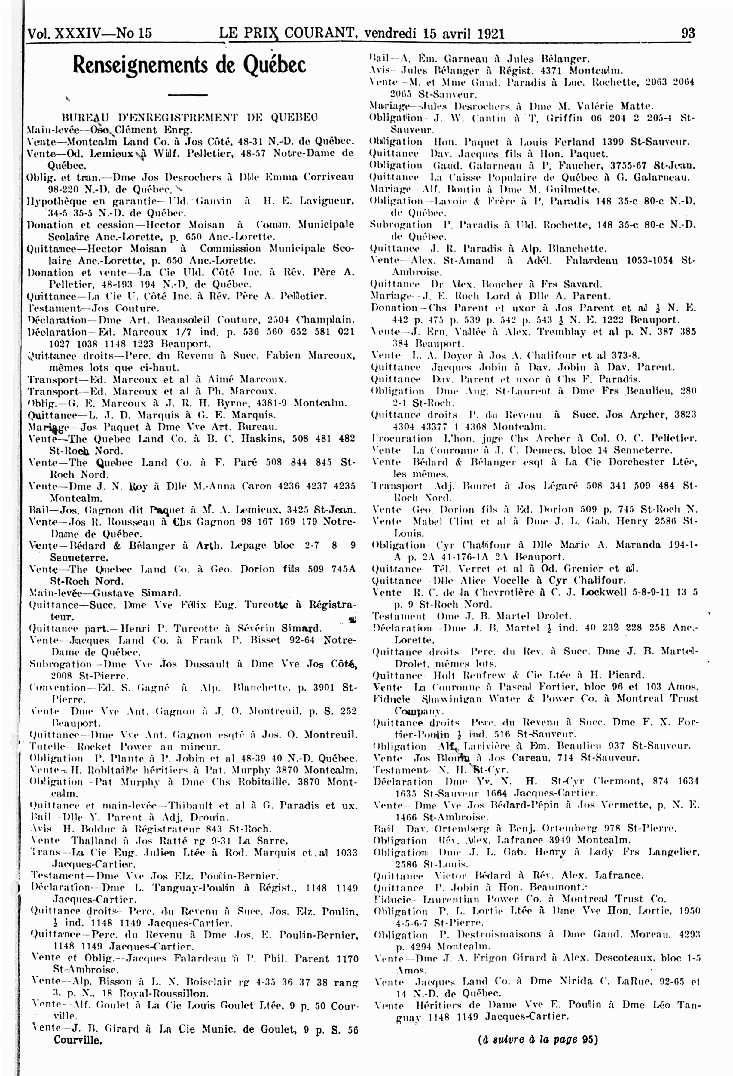 Le prix courant : Vol. 34, no 15 (15 avril 1921)