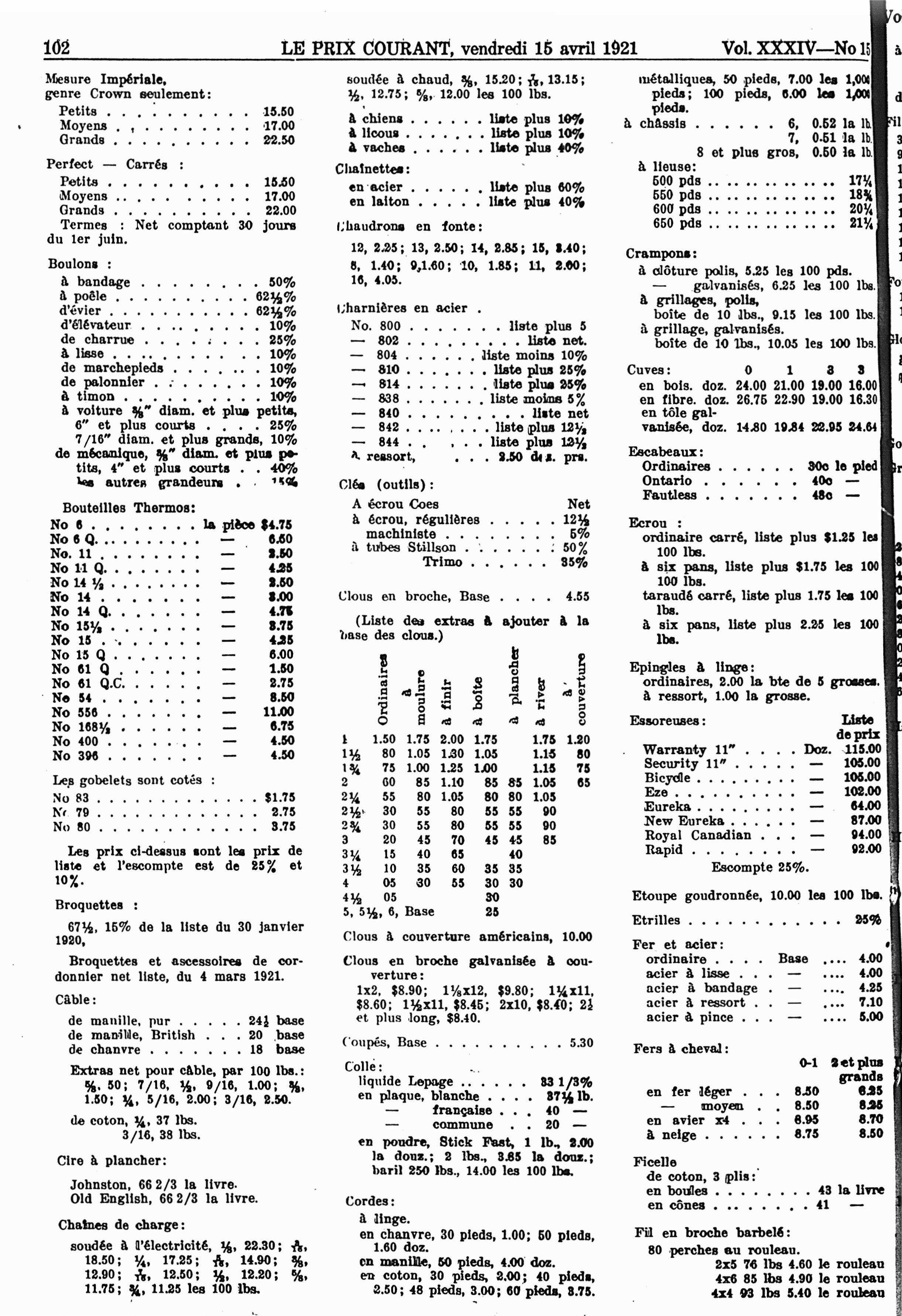 Le prix courant : Vol. 34, no 15 (15 avril 1921)