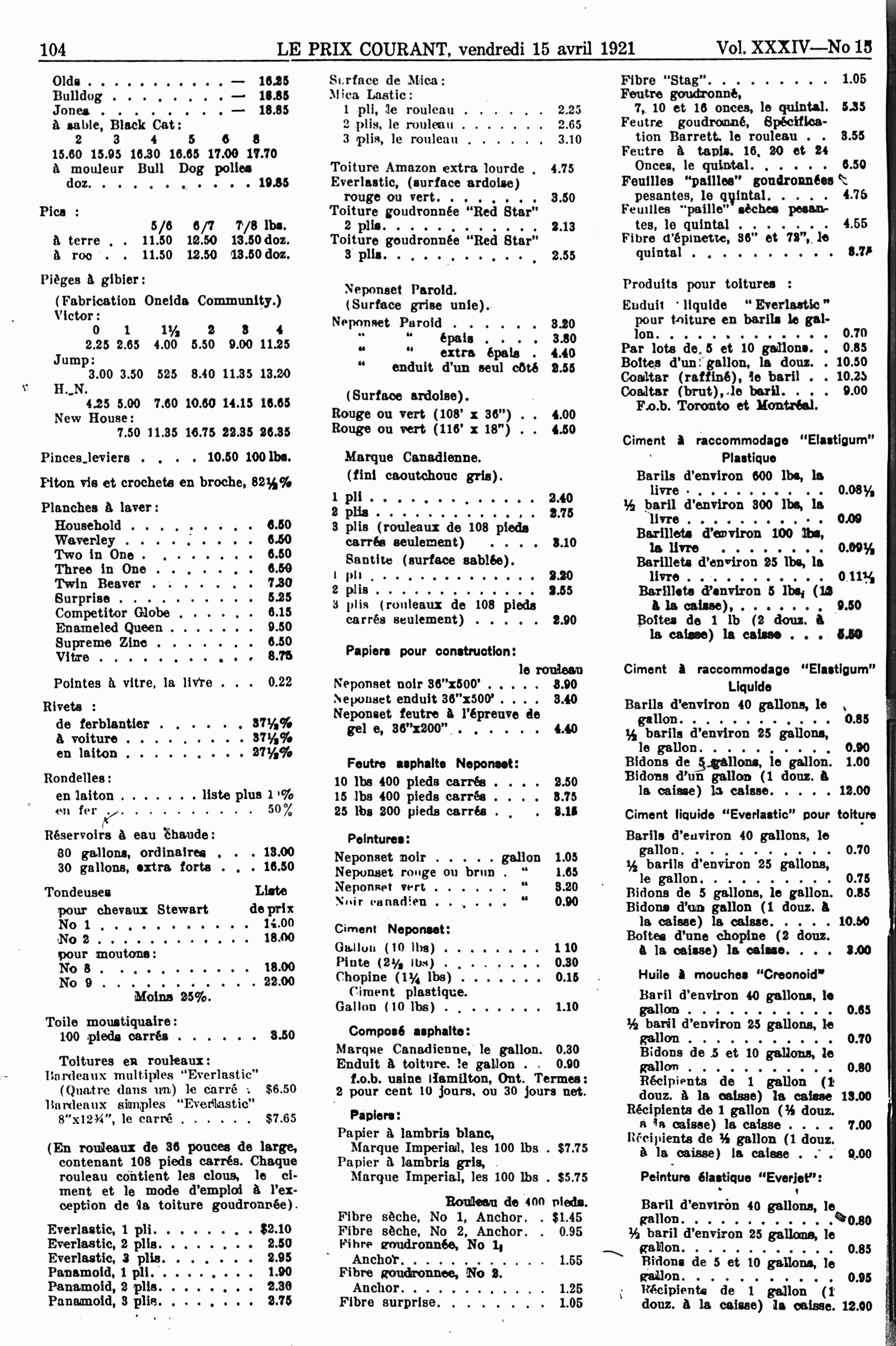 Le prix courant : Vol. 34, no 15 (15 avril 1921)