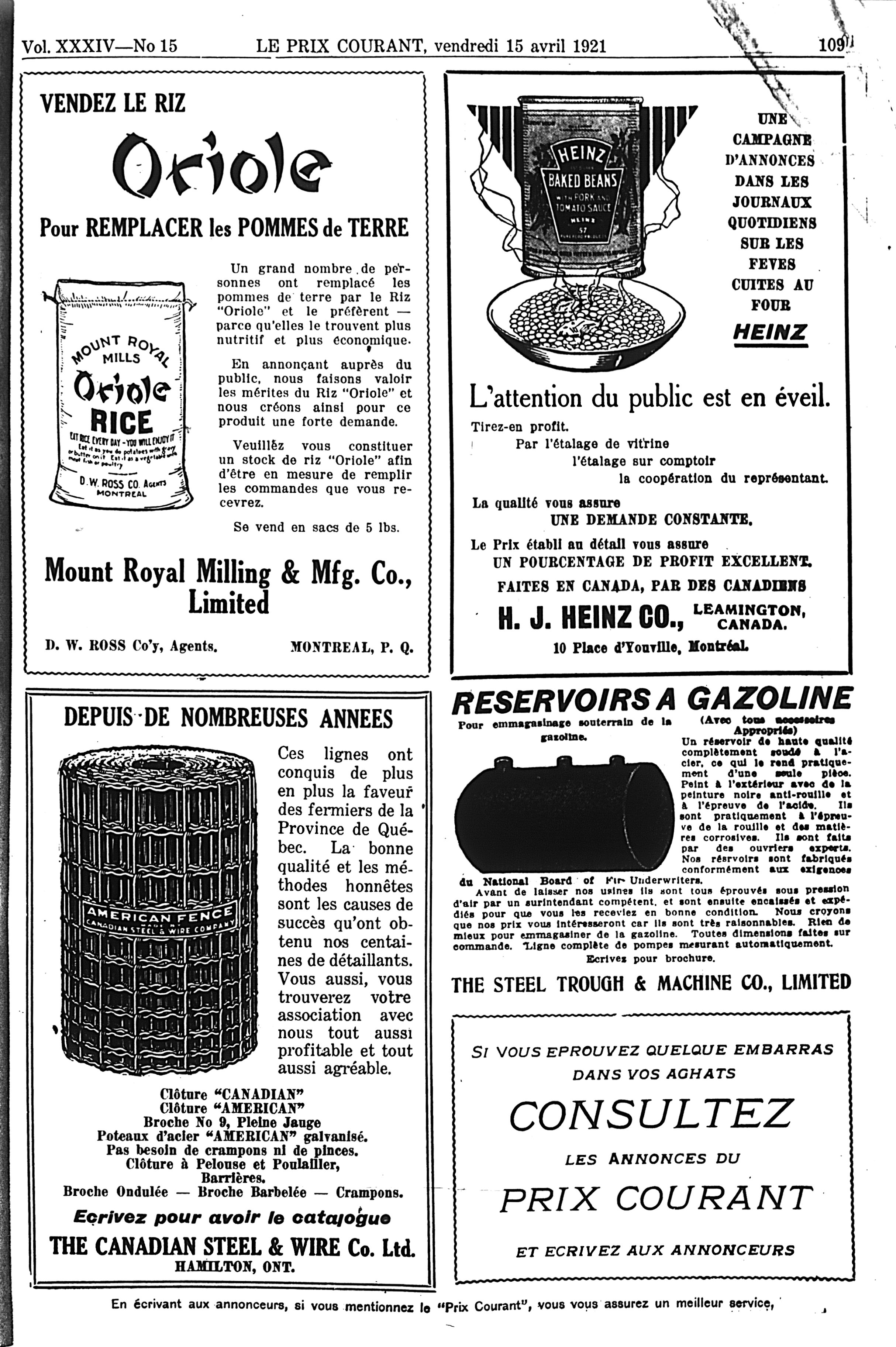 Le prix courant : Vol. 34, no 15 (15 avril 1921)