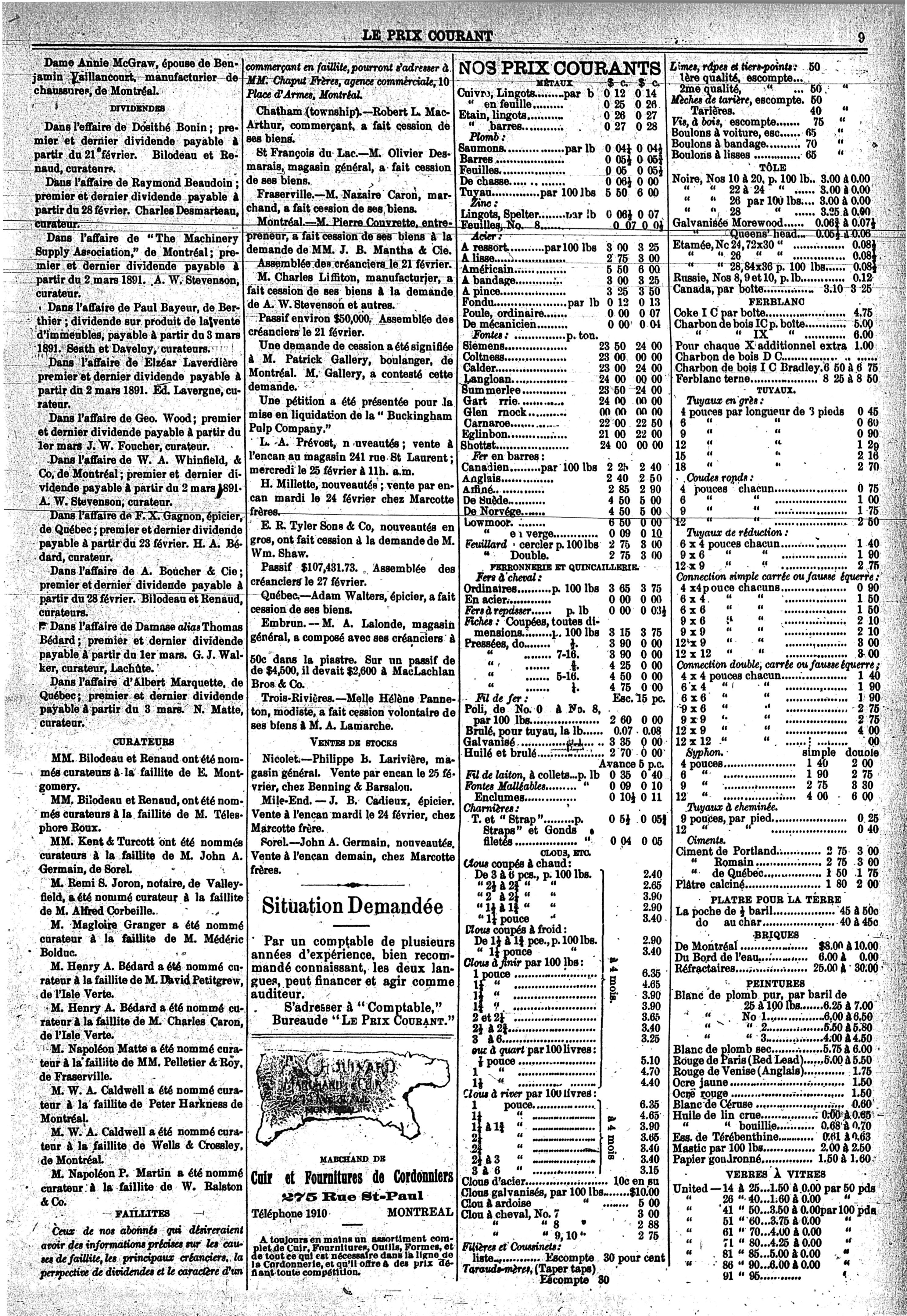 Le prix courant : Vol. 7, no 25 (20 févr. 1891)
