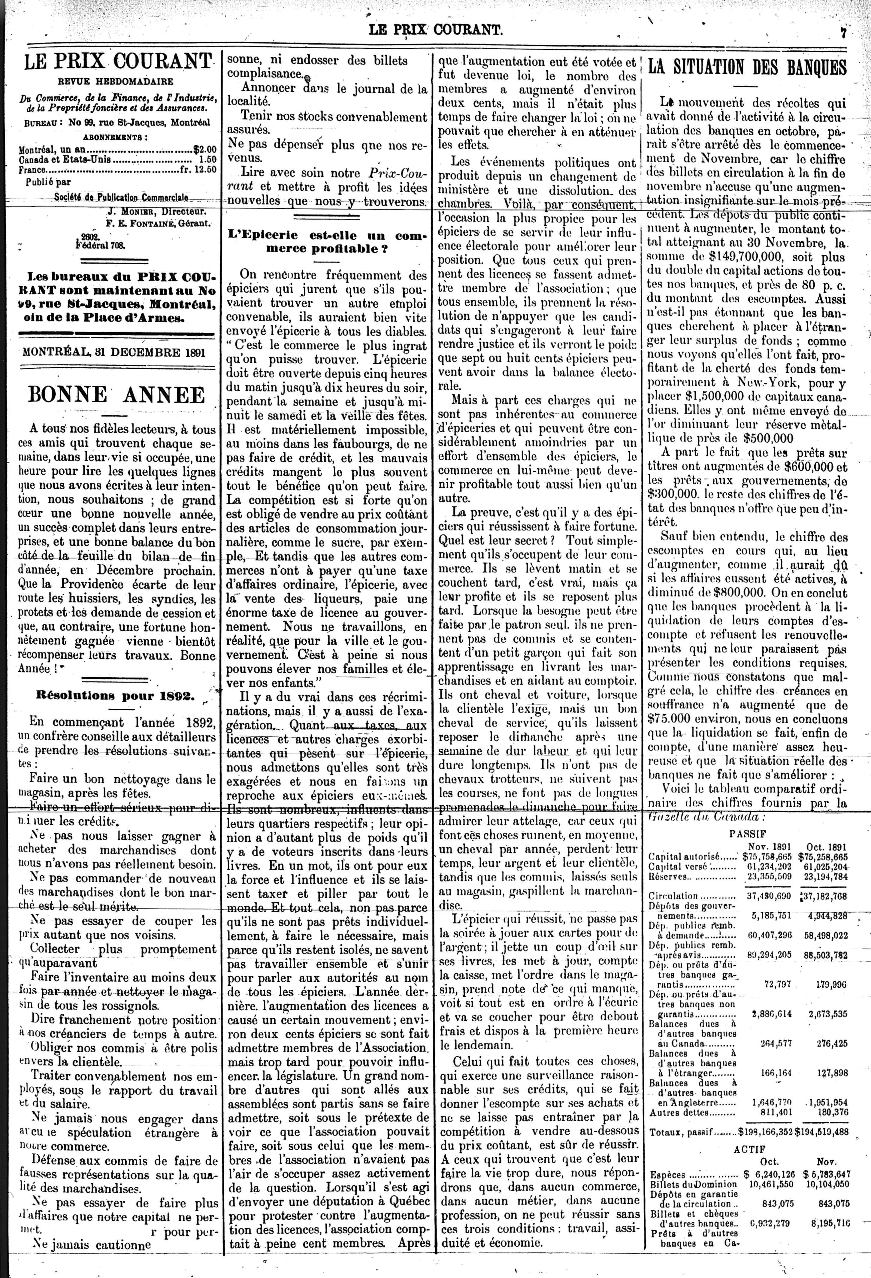 Le prix courant : Vol. 9, no 18 (31 déc. 1891)