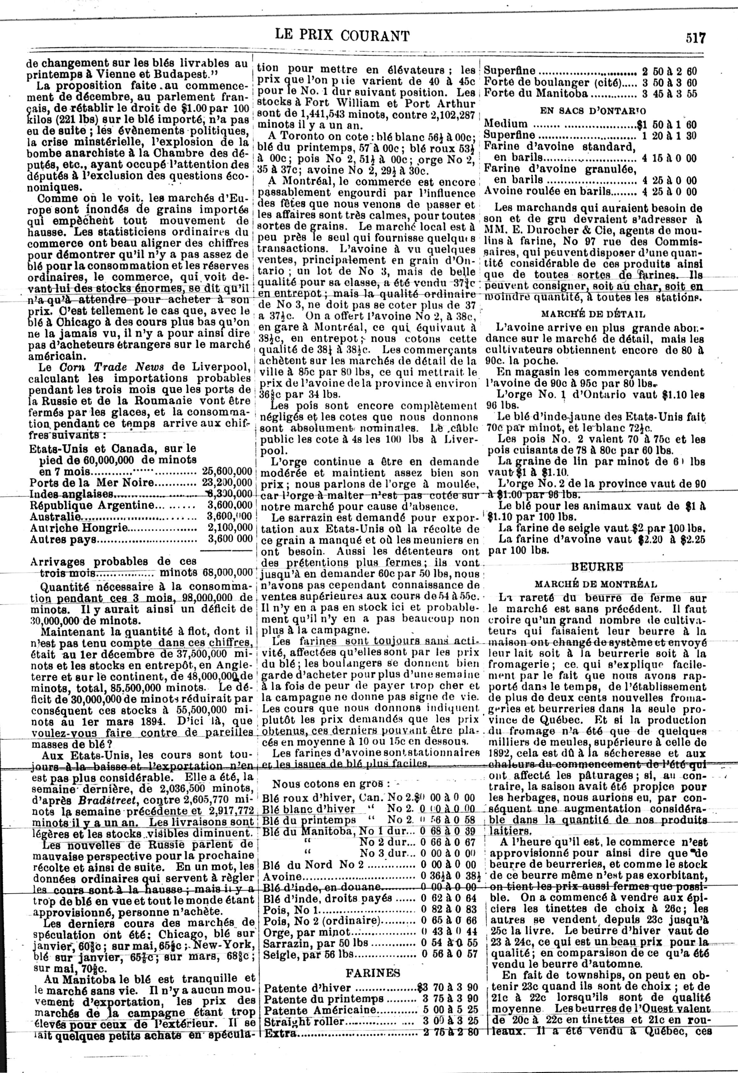 Le prix courant : Vol. 13, no 19 (5 janv. 1894)
