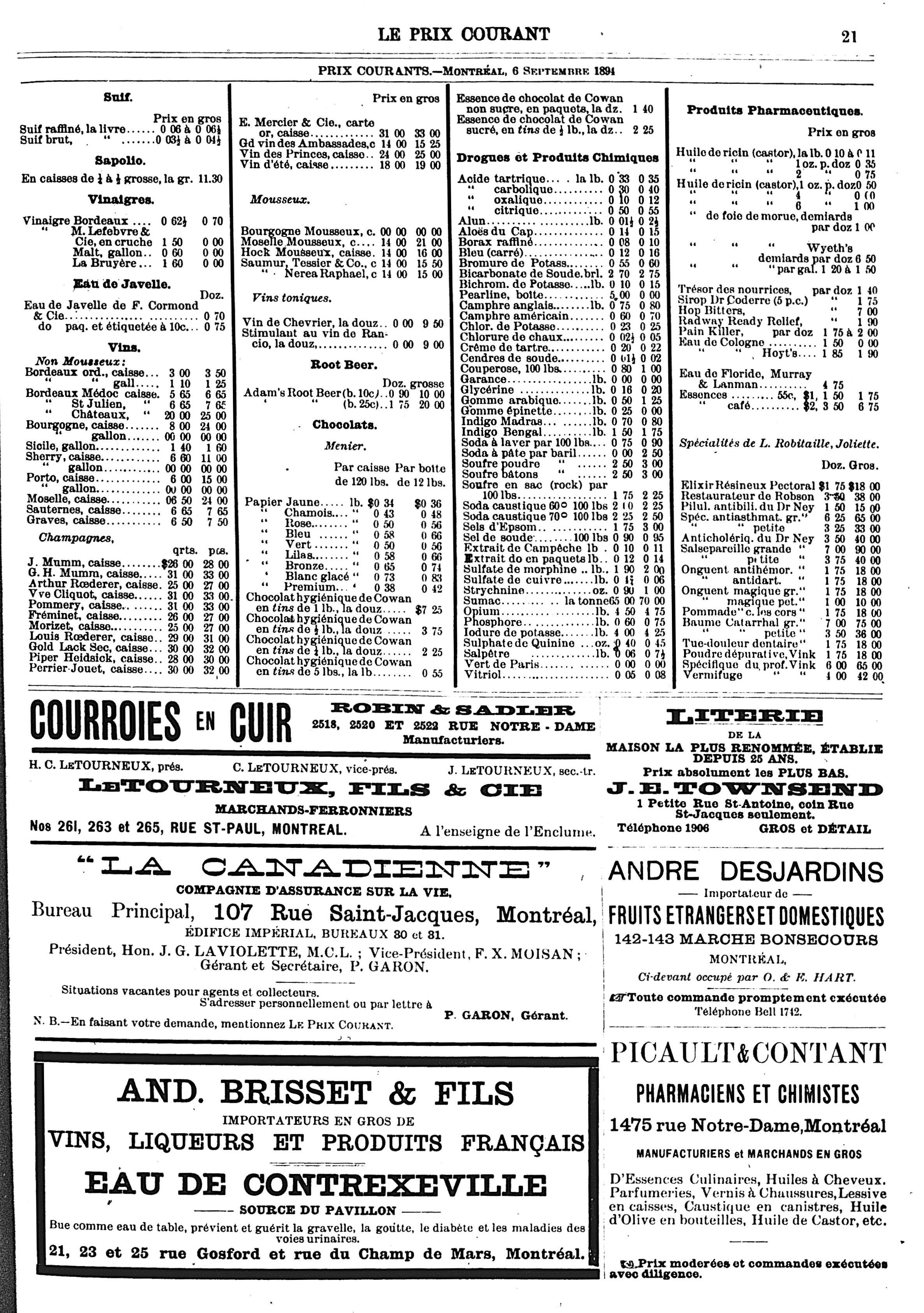 Le prix courant : Vol. 15, no 1 (7 sept. 1894)