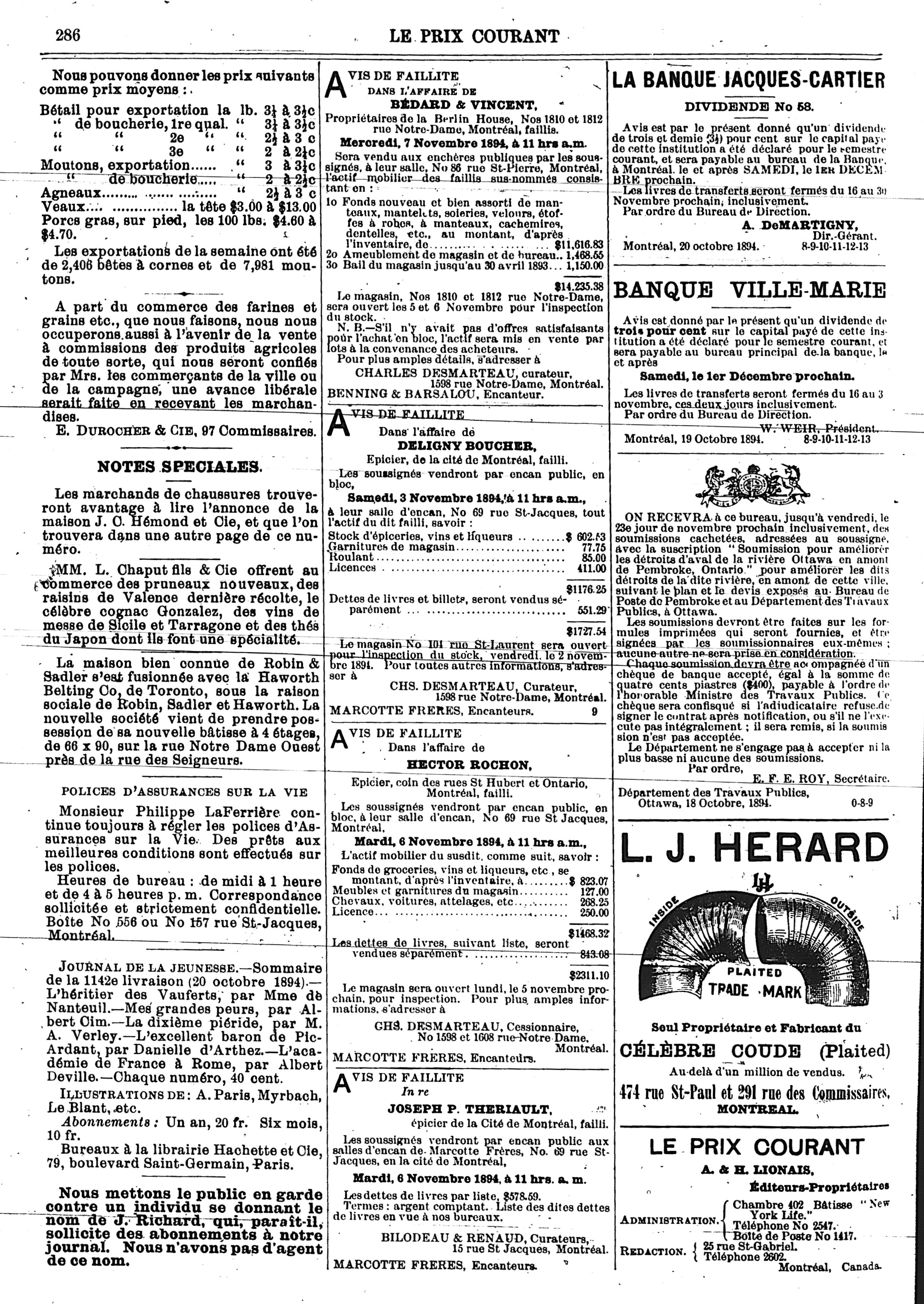 Le prix courant : Vol. 15, no 9 (2 nov. 1894)