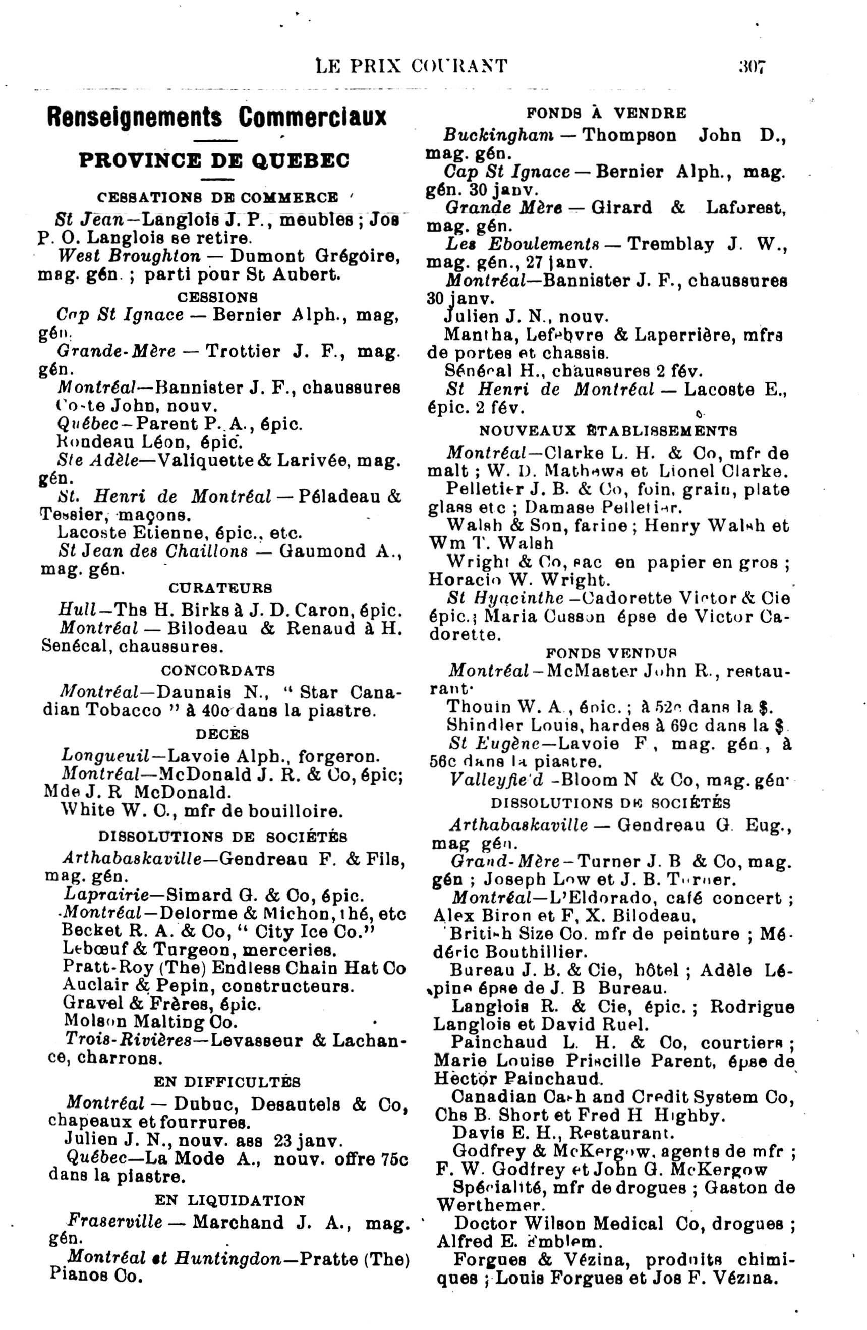 Le prix courant : Vol. 23, no 4 (27 janv. 1899)