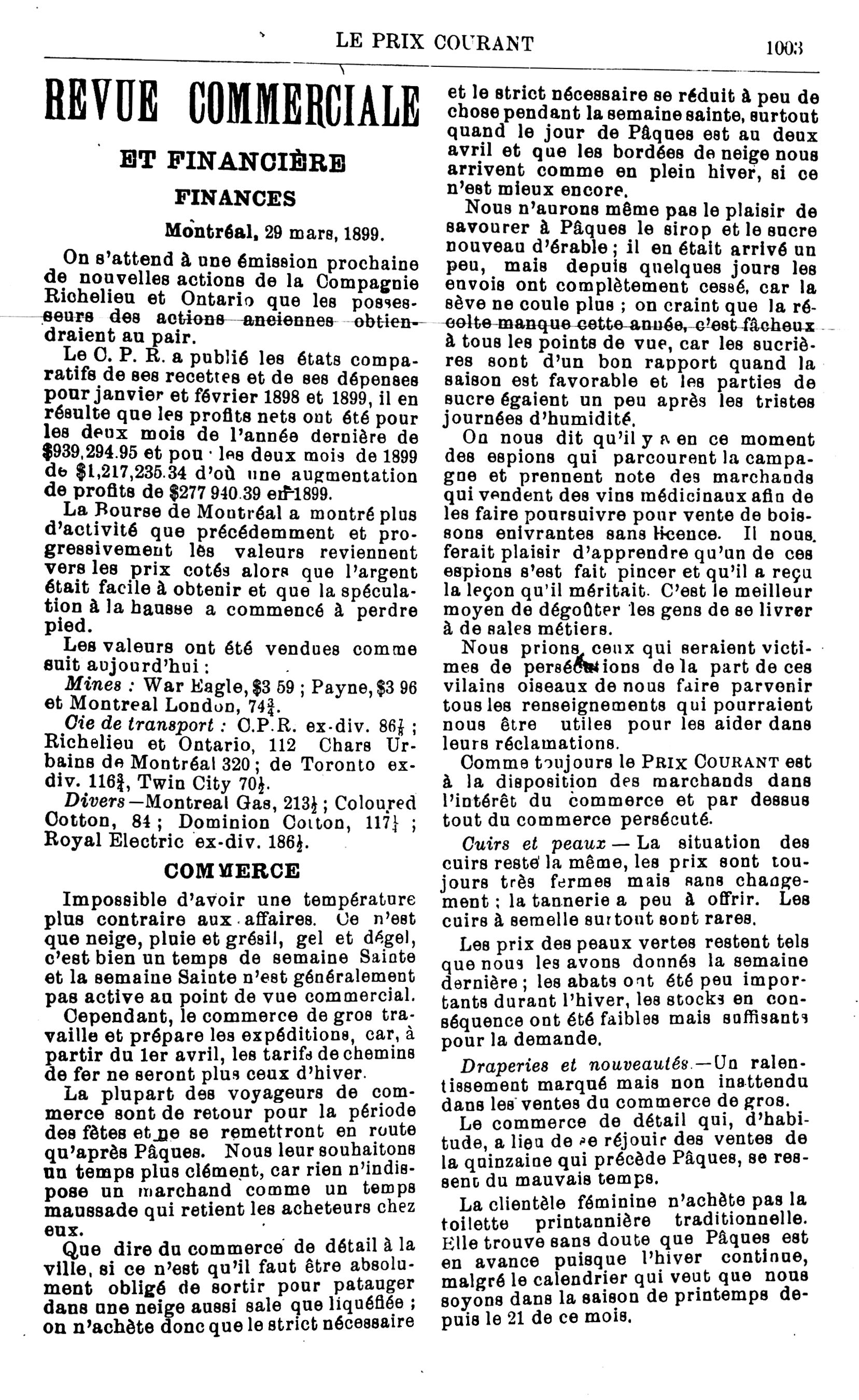Le prix courant : Vol. 23, no 13 (31 mars 1899)