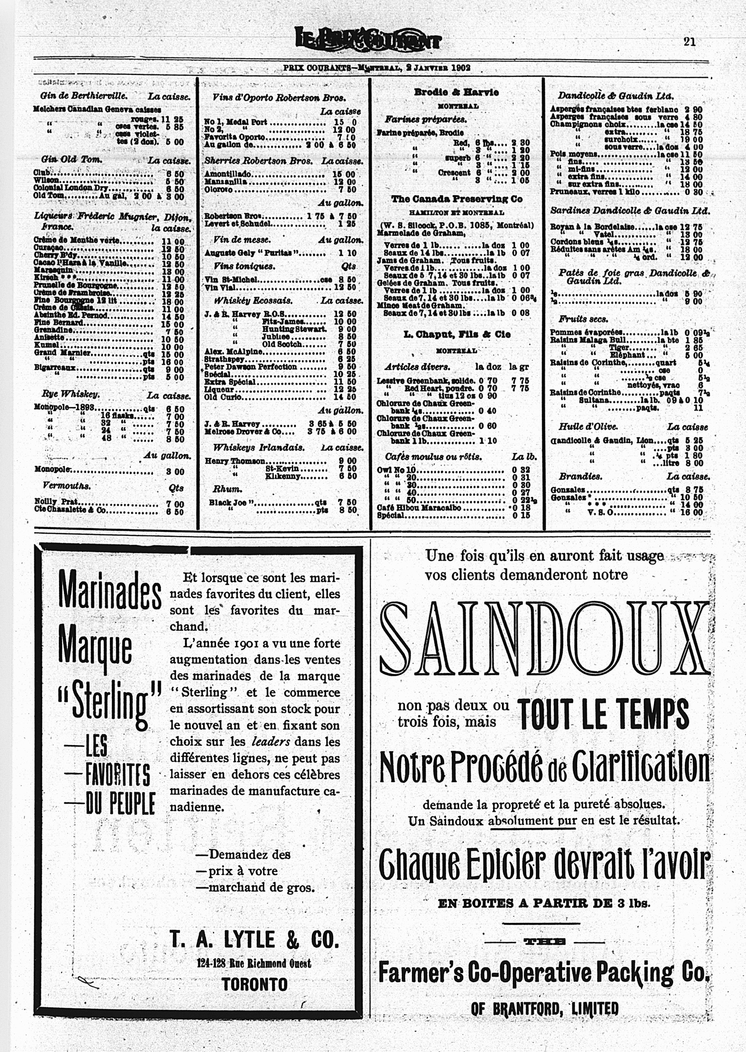 Le prix courant : Vol. 33, no 1 (3 janv. 1902)