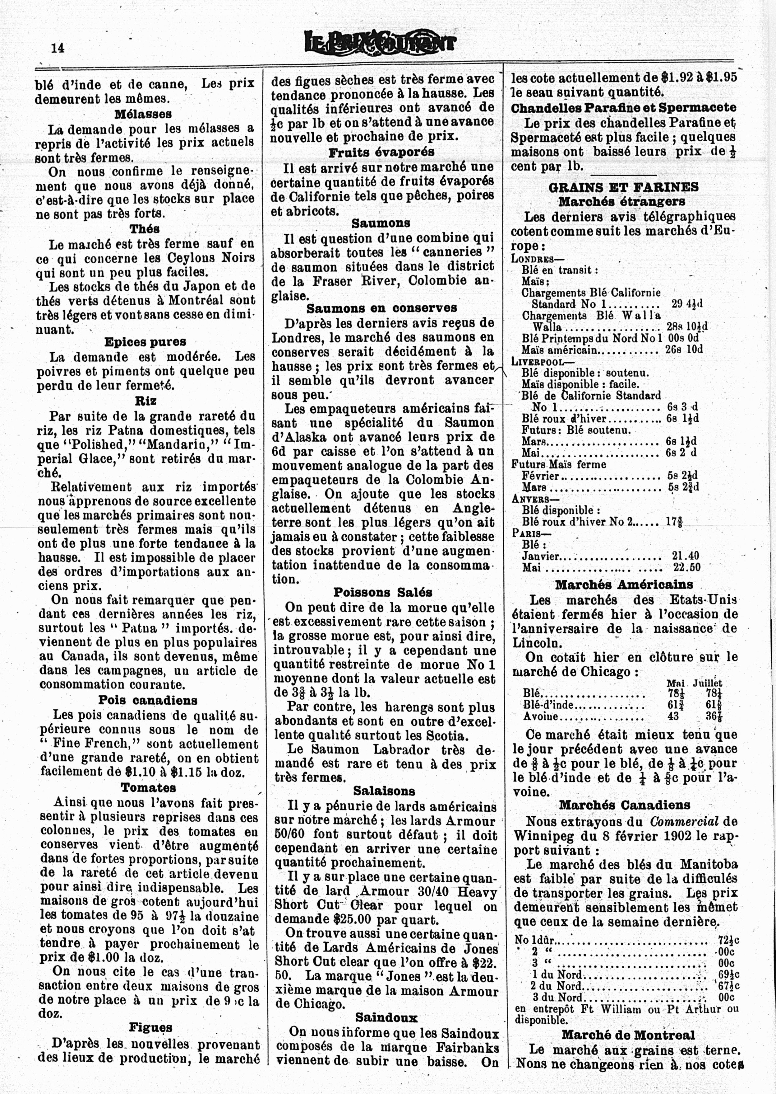 Le prix courant : Vol. 33, no 7 (14 févr. 1902)
