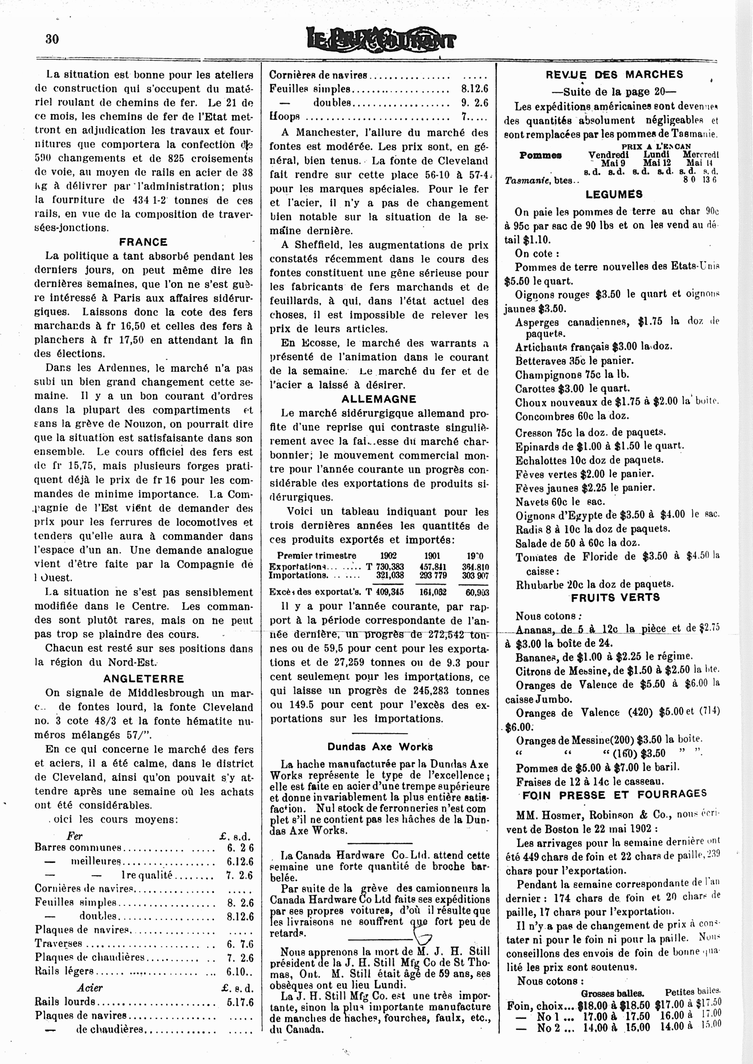 Le prix courant : Vol. 33, no 22 (30 mai 1902)