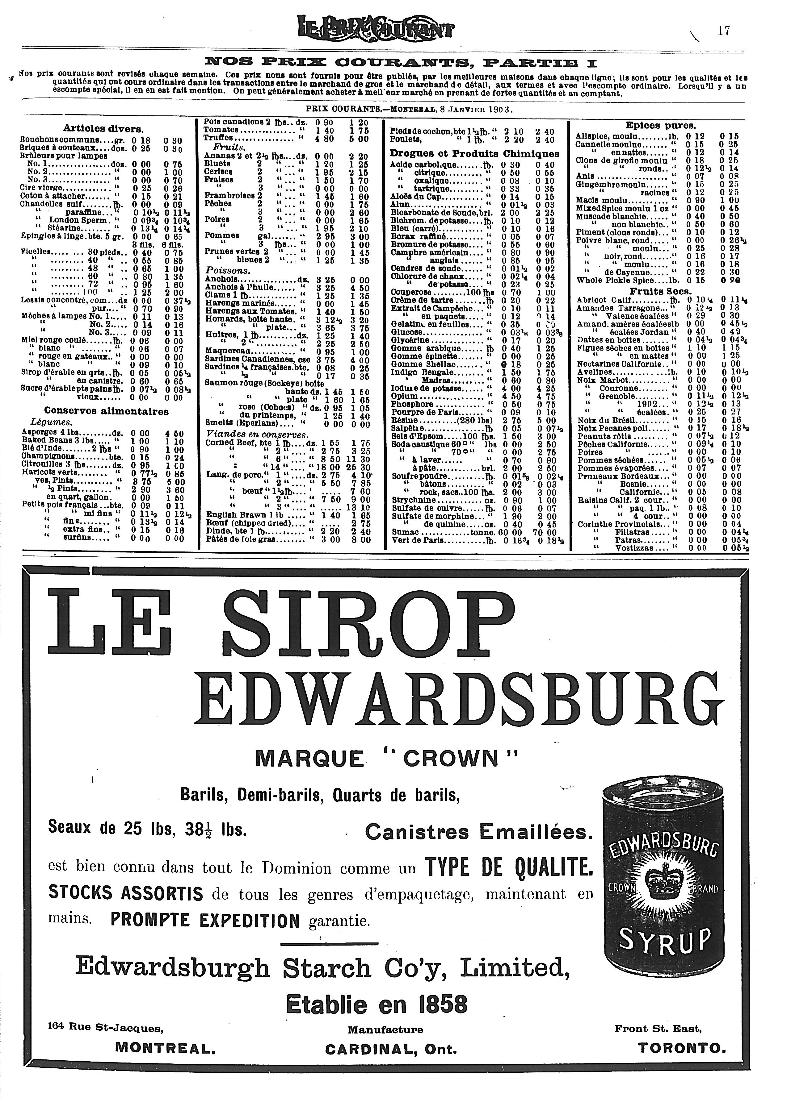 Le prix courant : Vol. 35, no 2 (9 janv. 1903)