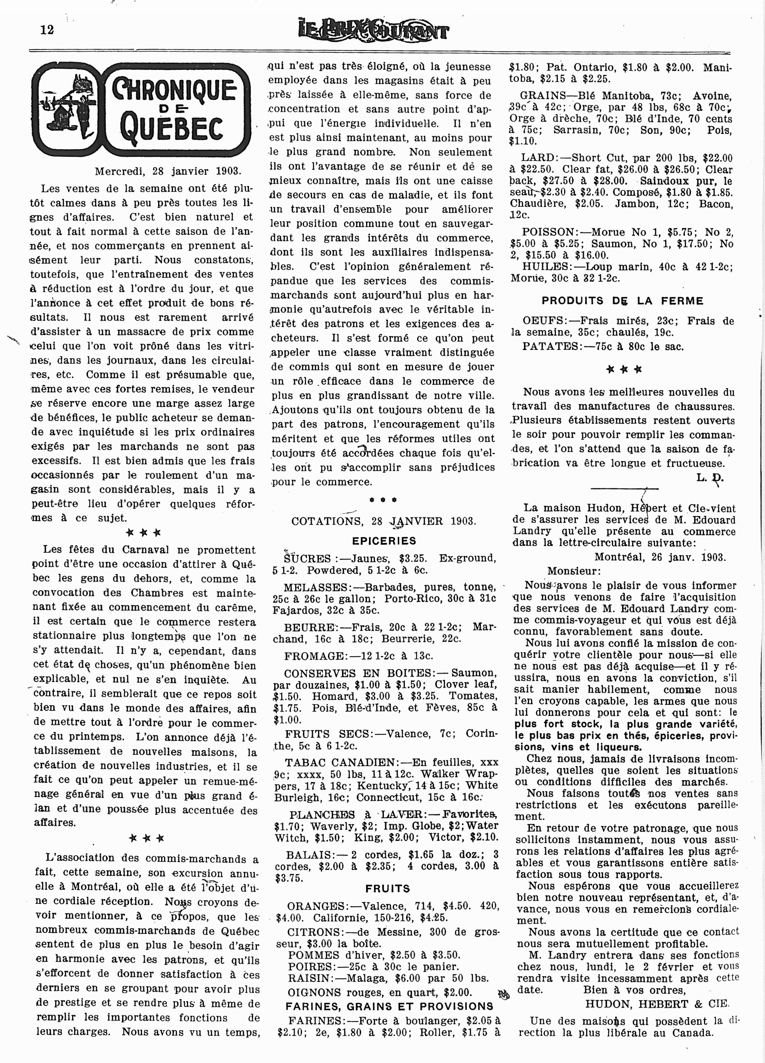 Le prix courant : Vol. 35, no 5 (30 janv. 1903)