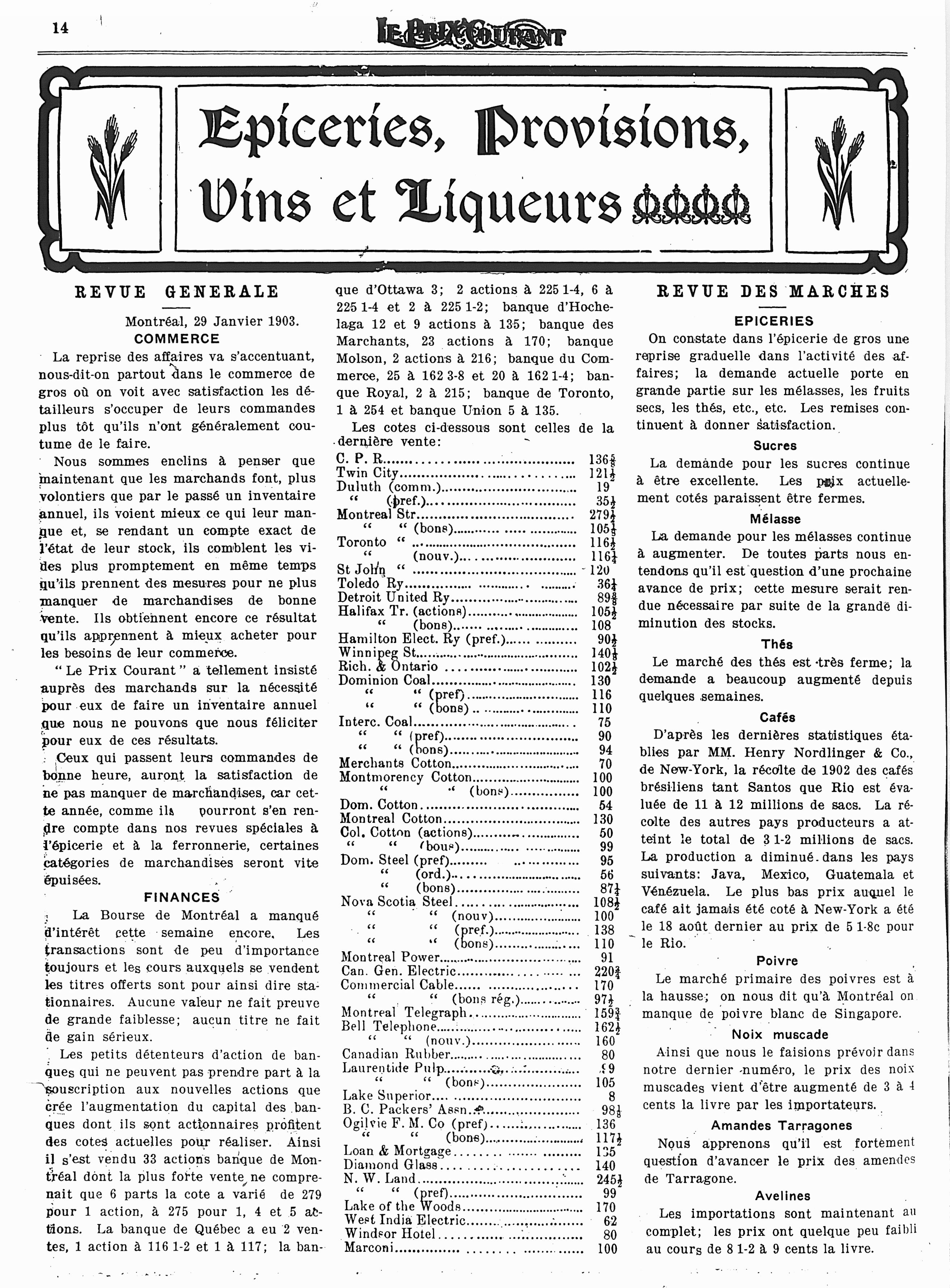 Le prix courant : Vol. 35, no 5 (30 janv. 1903)
