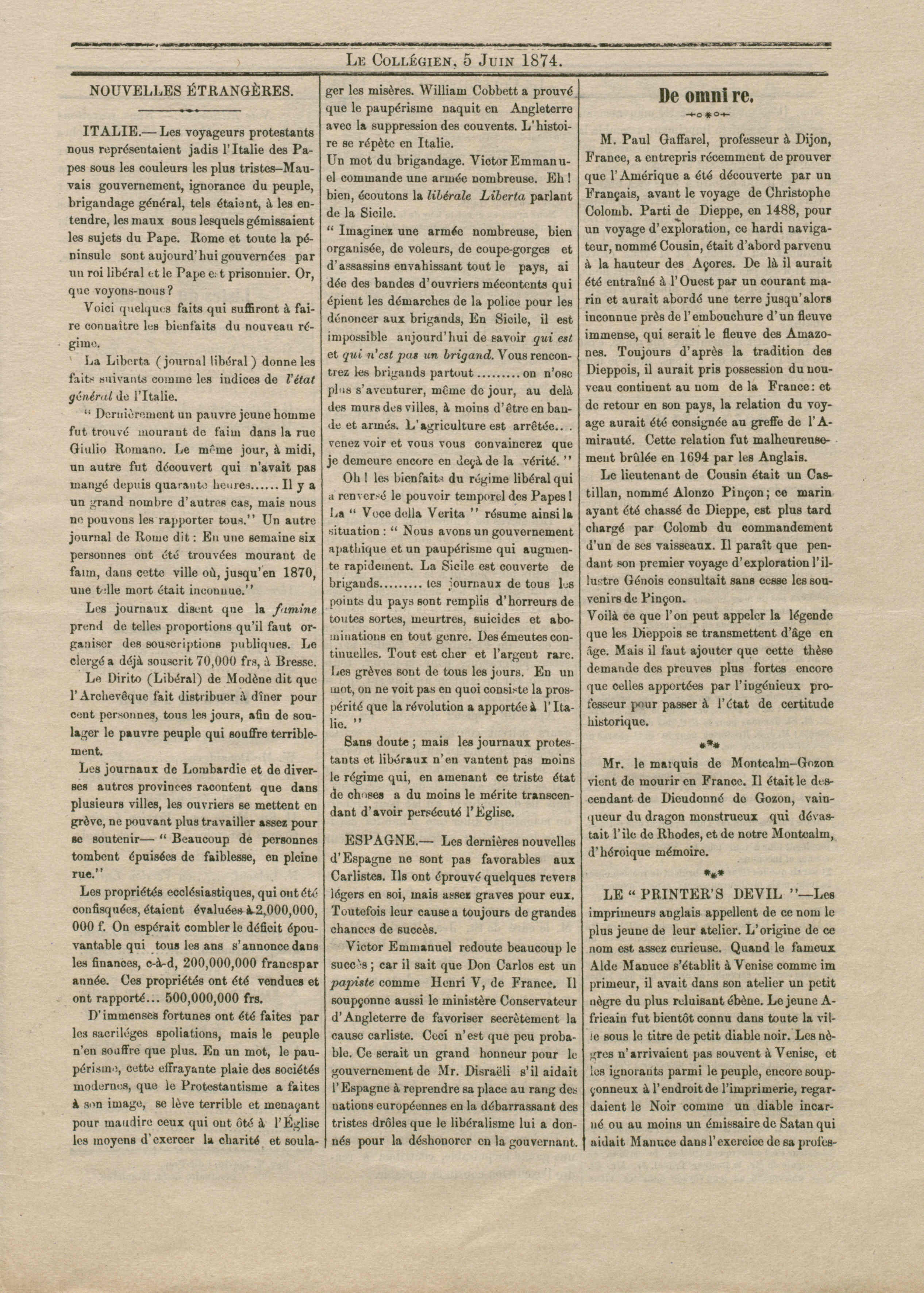 - Le collgien [Vol. 1, no 16 (5 juin 1874)]