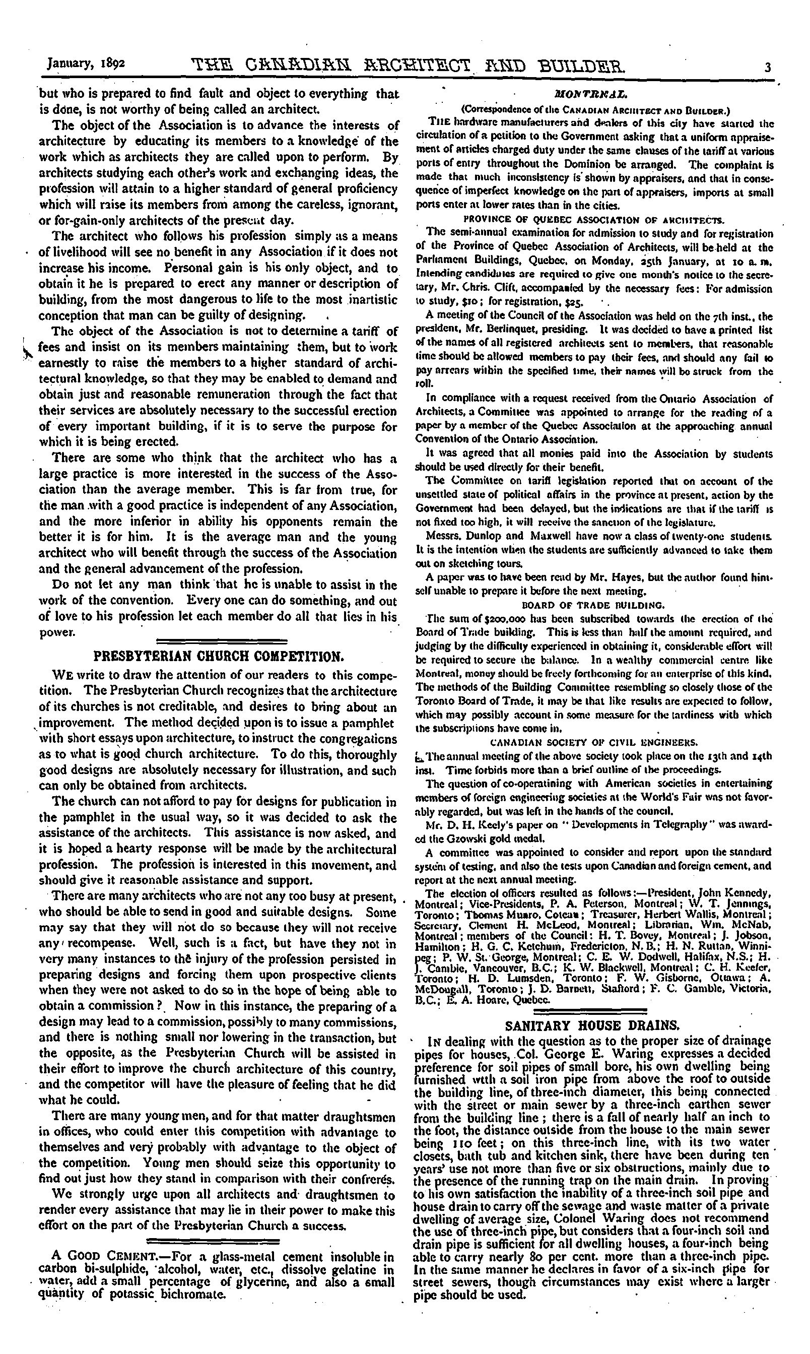 Canadian architect and builder [Vol. 5, no. 1 (Jan. 1892)]