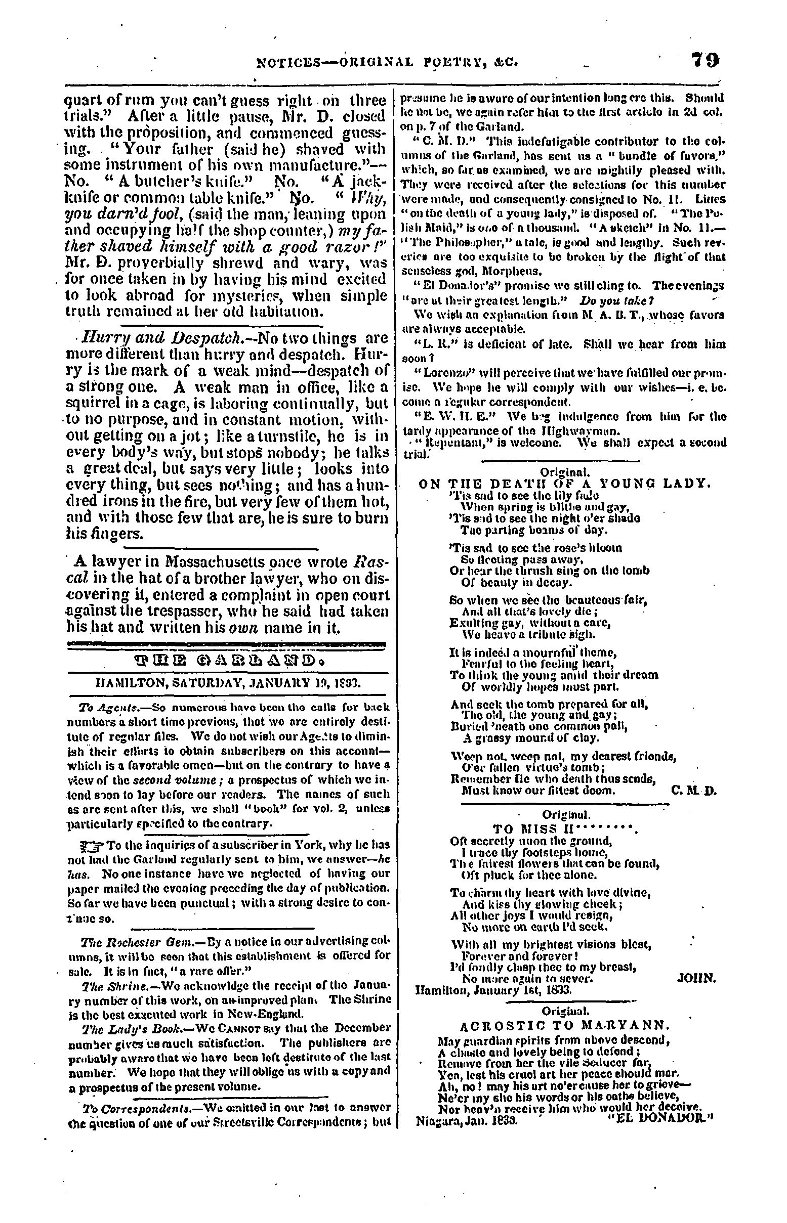 - The garland [Vol. 1, no. 10 (Jan. 19, 1833)]