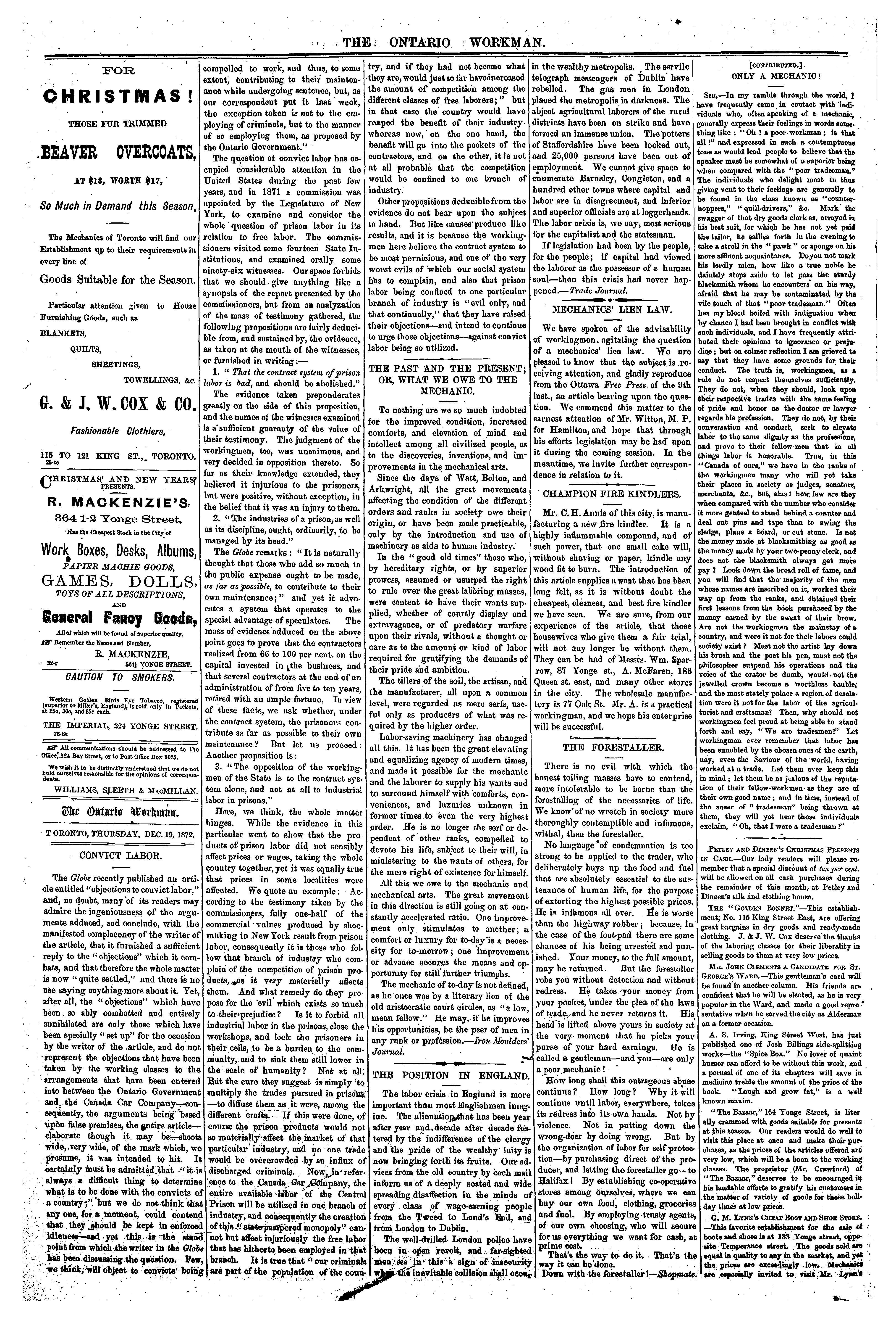 The Ontario workman : [Vol. 1, no. 36 (Dec. 19, 1872)]